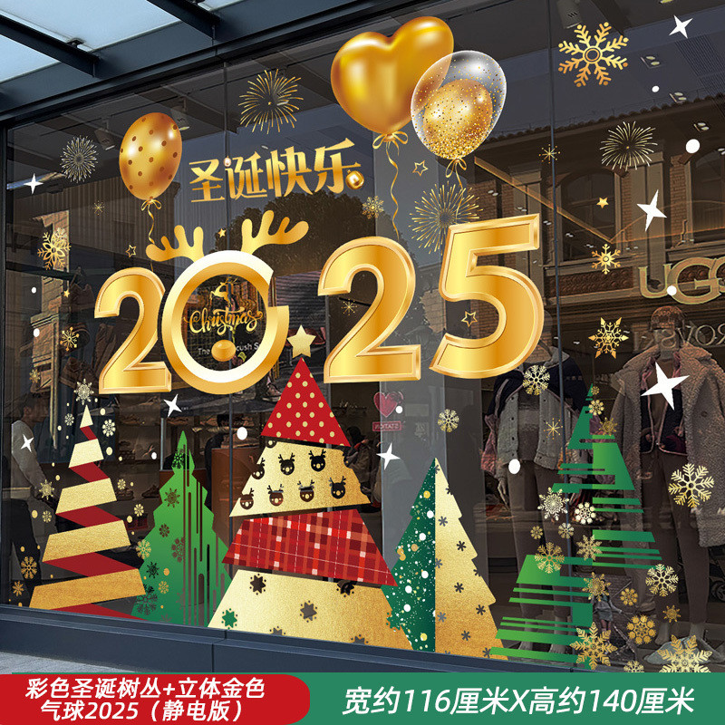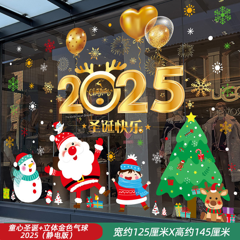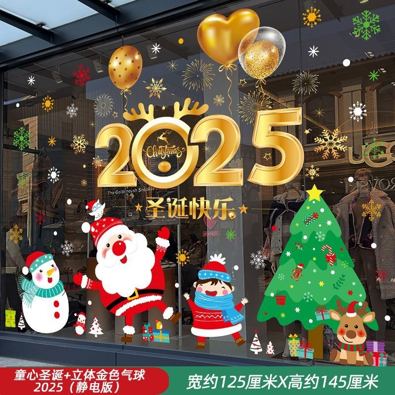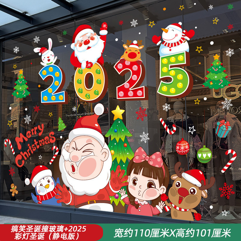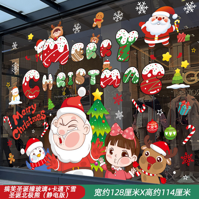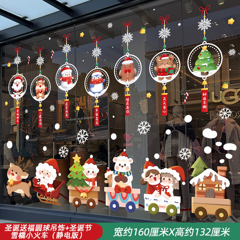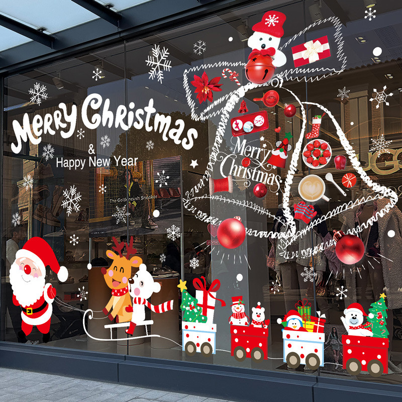 Ngày Năm Mới Đồ Trang Trí Giáng Sinh Tĩnh Kính Dán Ông Già Noel Cây Giáng Sinh Bông Tuyết Bố Trí Cảnh Cửa Hàng Dán Cửa Sổ