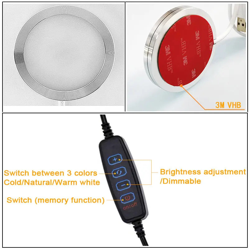 Đèn LED mờ USB 5V 3 màu Thay đổi 5W 7W Dưới tủ Kệ đèn trần có công tắc