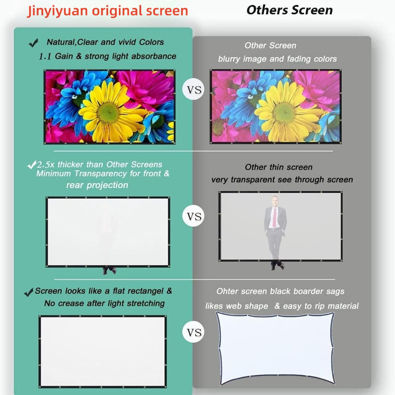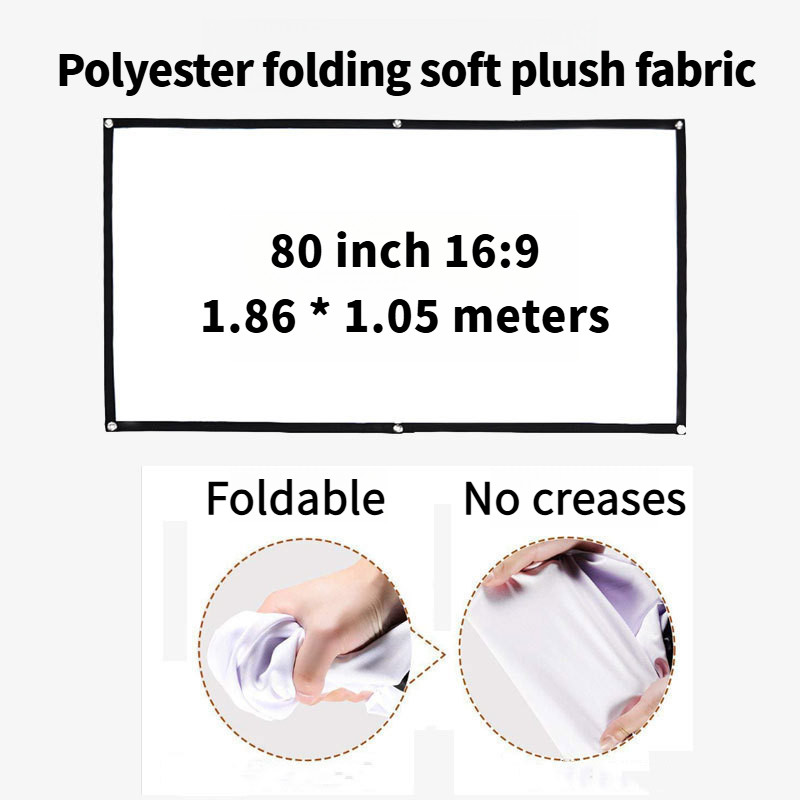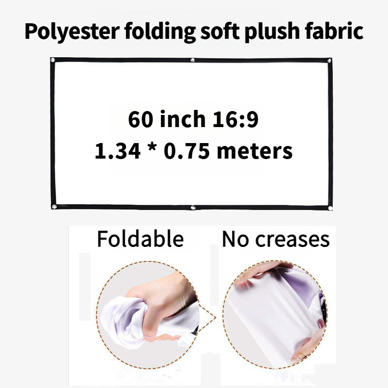 Màn hình chiếu di động mật độ cao tỷ lệ 16: 9 1080P 3d 4K HD Phim máy chiếu 60 72 84 92 100 120 150 inch cho văn phòng tại nhà
