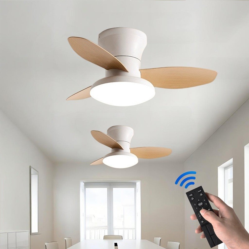 Đèn Quạt Trần Bắc Âu Có Điều Khiển Từ Xa 6 Tốc Độ Có Thể Điều Chỉnh 3 Màu Đèn LED Nhà Bếp Phòng Khách Phòng Ngủ Quạt Đèn