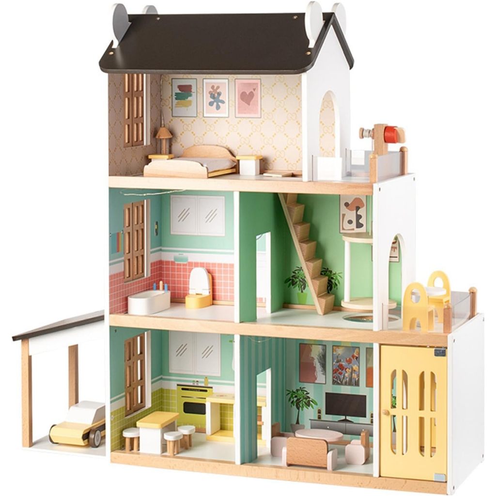 Đồ chơi nhà búp bê Nhà búp bê bằng gỗ 3 tầng Biệt thự bằng gỗ