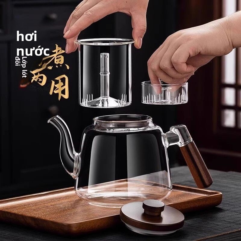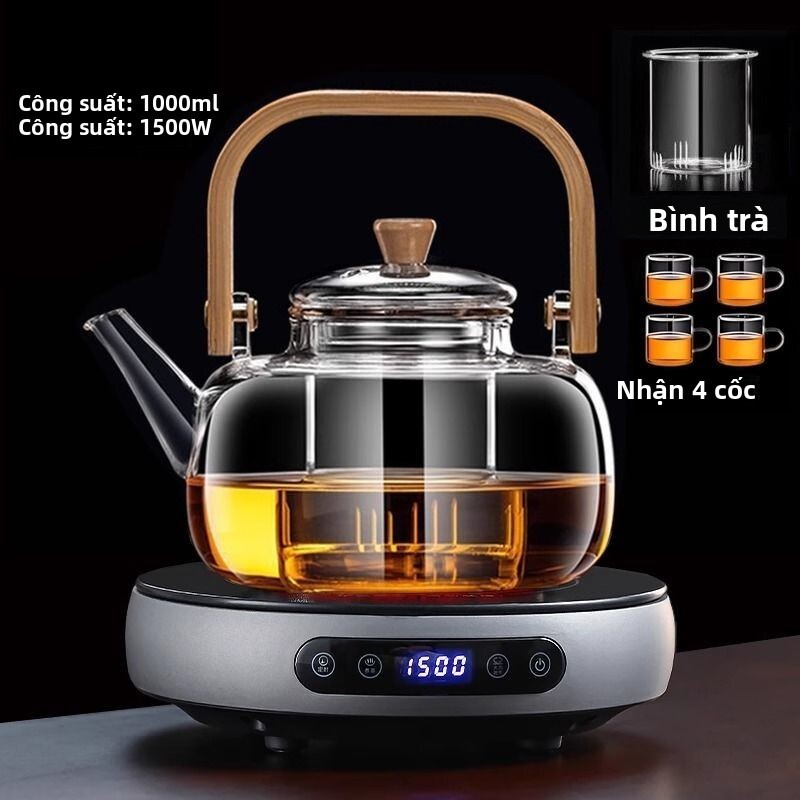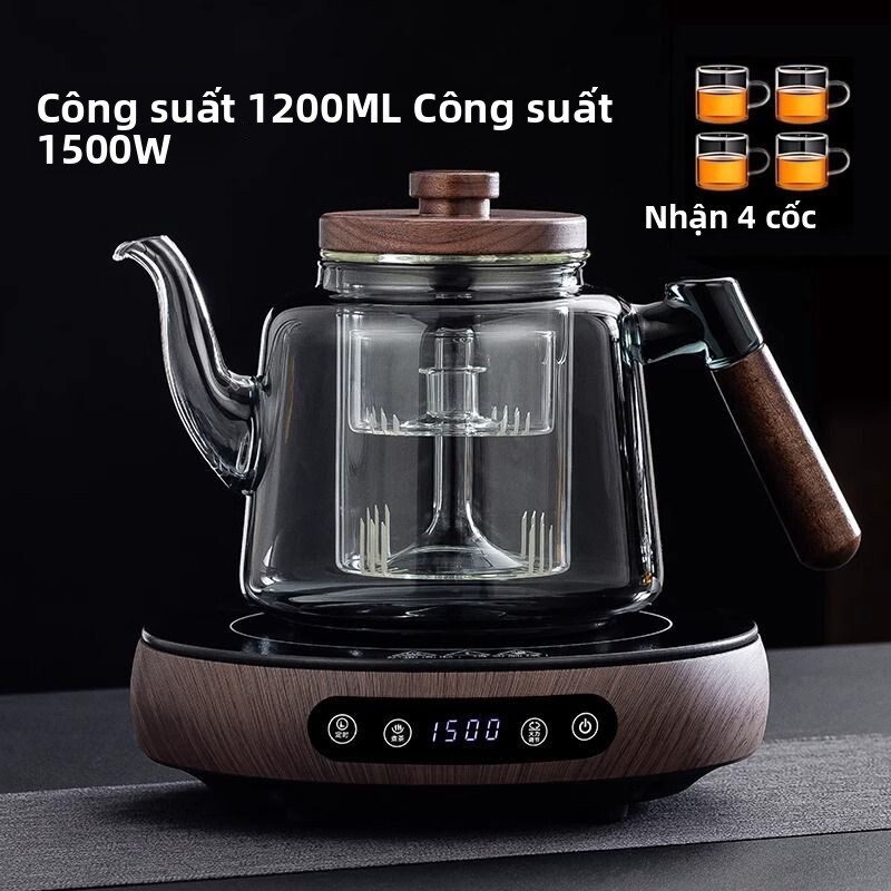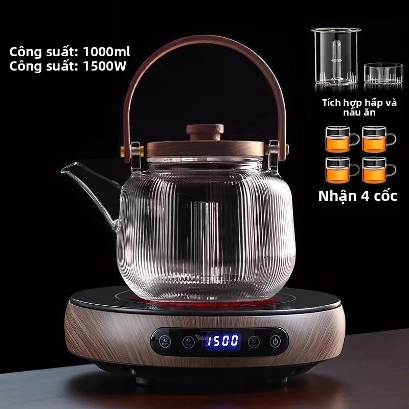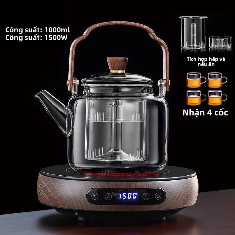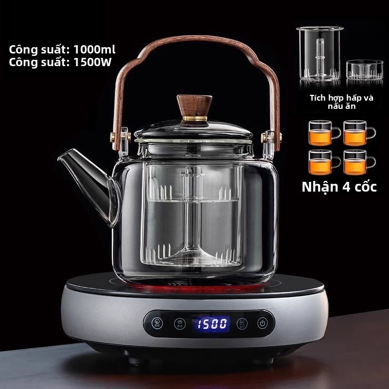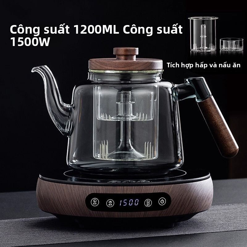 2025 Ấm điện gốm cao cấp mới, ấm trà thủy tinh dày, dung lớn, tích hợp chức năng đun nước và hấp