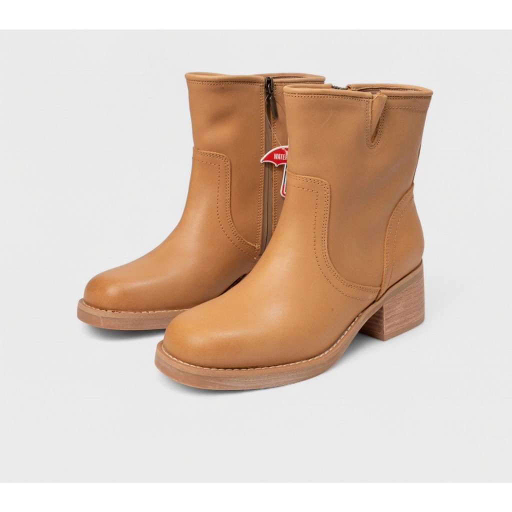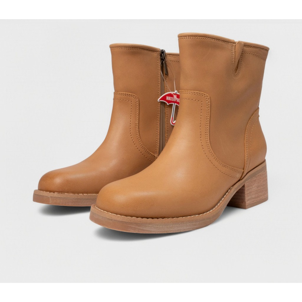 Boots Lửng Cao Gót Blondo (nâu sáng) (Da thật - chống nước)