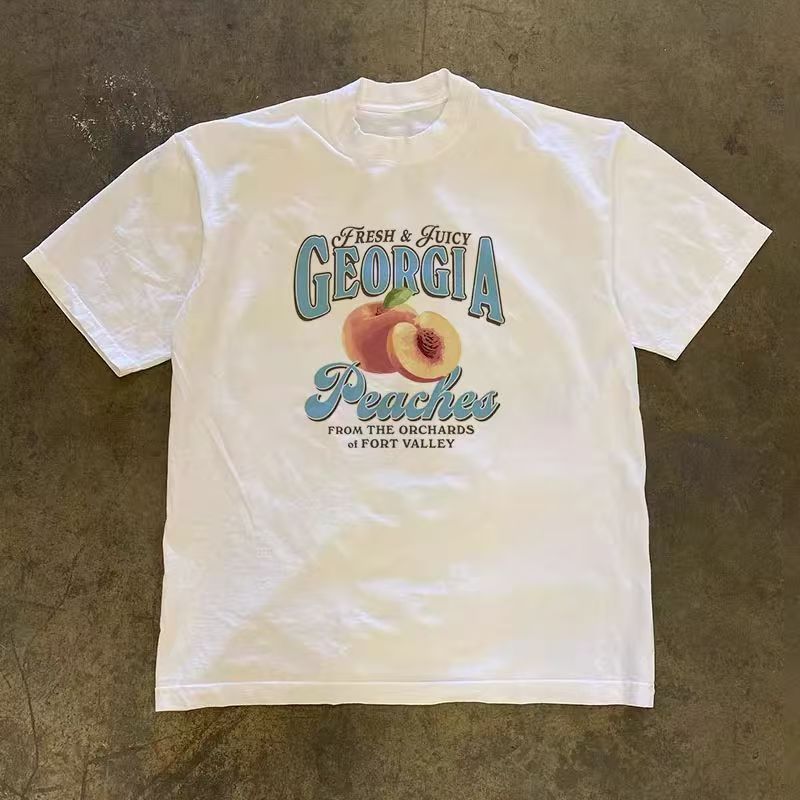 Áo thun nam và nữ-Hình in trái cây sống động-Thiết kế đơn giản và thời trang-100% cotton-Dáng rộng-Mềm mại và thoáng khí