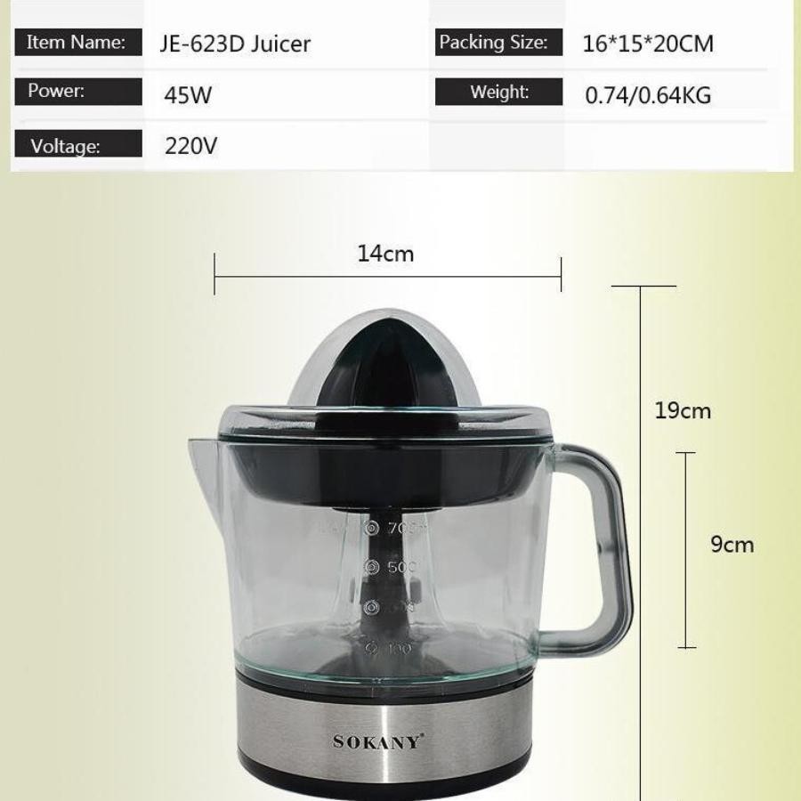 Máy vắt cam SOKANY JE-6230 dùng điện CHÍNH HÃNG dung tích 700ml, Máy vắt cam tự động