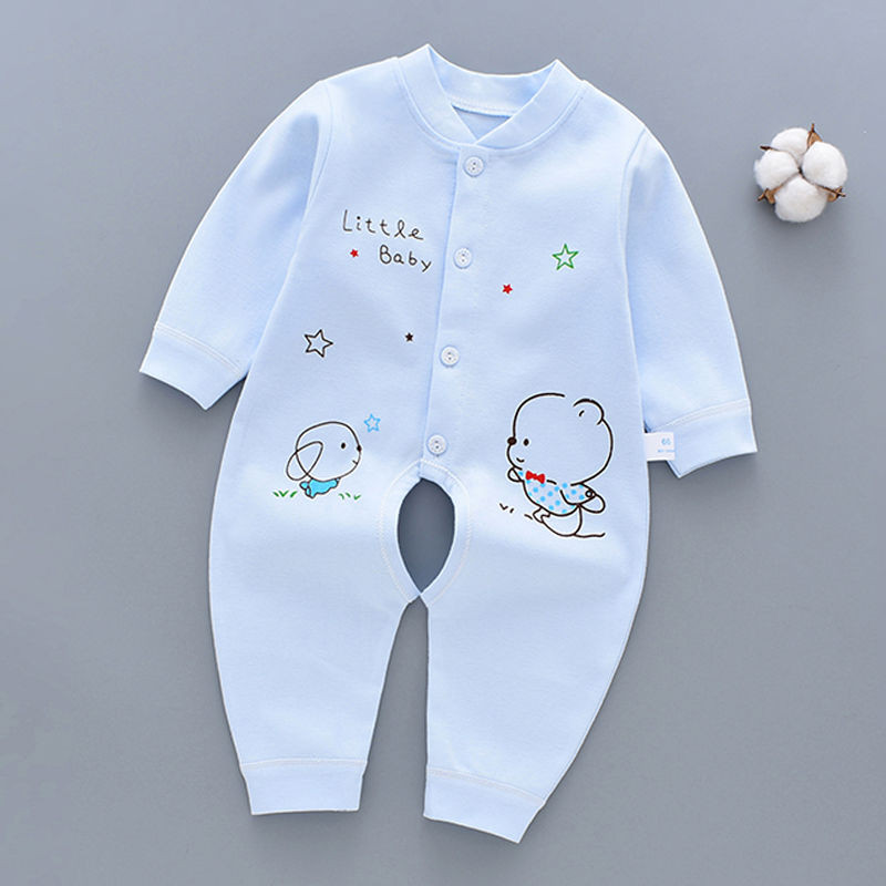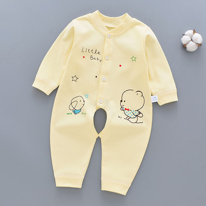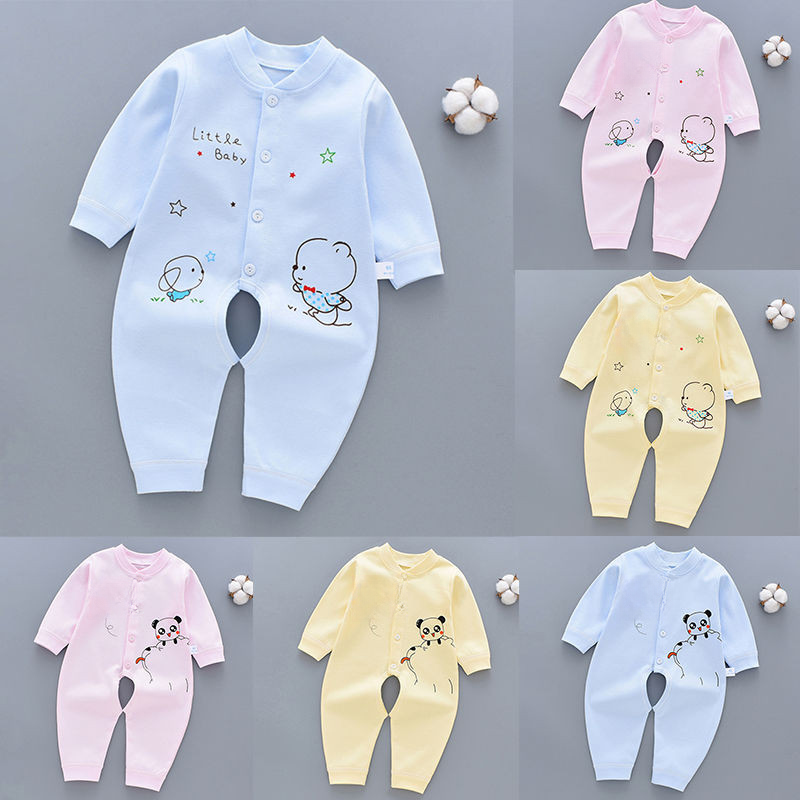 Sơ Sinh Cotton Nguyên Chất Mở Đáy Áo Liền Quần Cho Bé 0 Đến Tháng Sáu Nam Nữ Bé Dài Tay Áo Liền Quần Mùa Hè Xuân Thu Đông