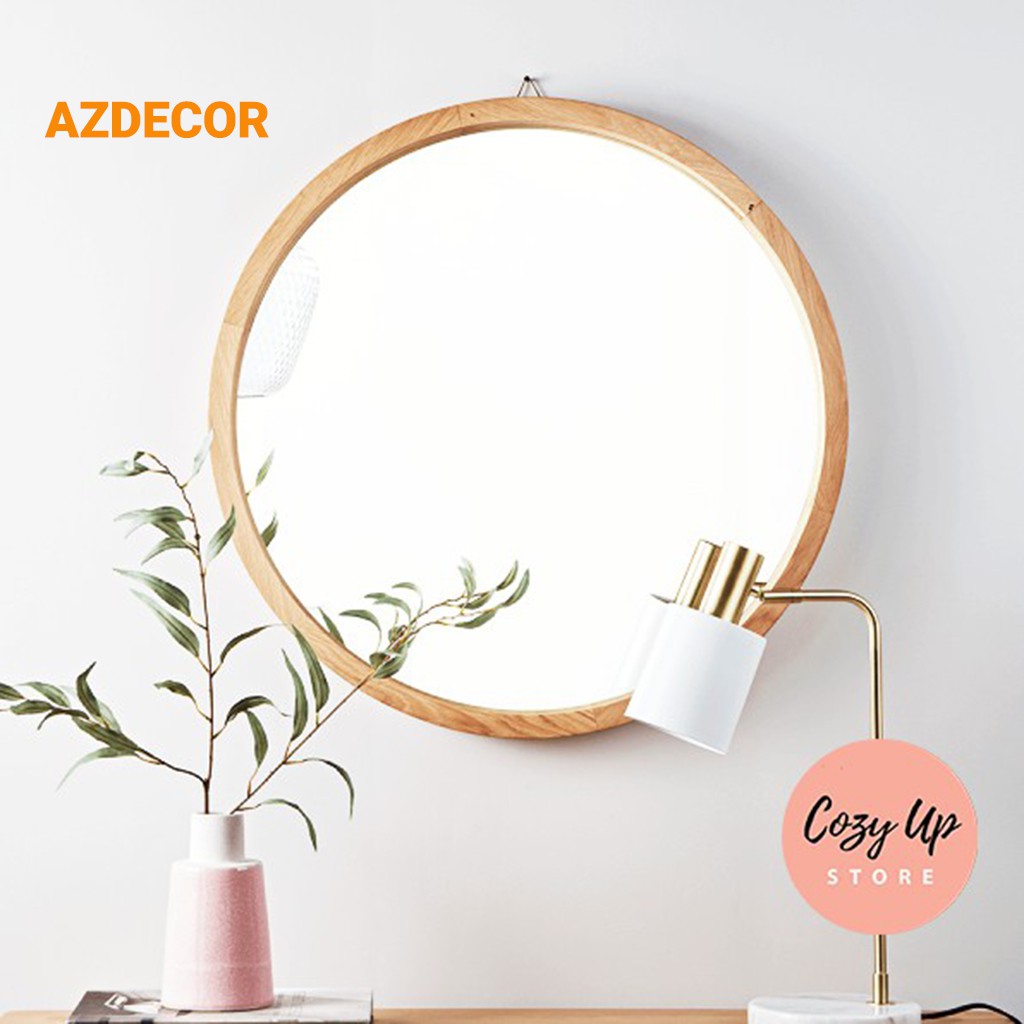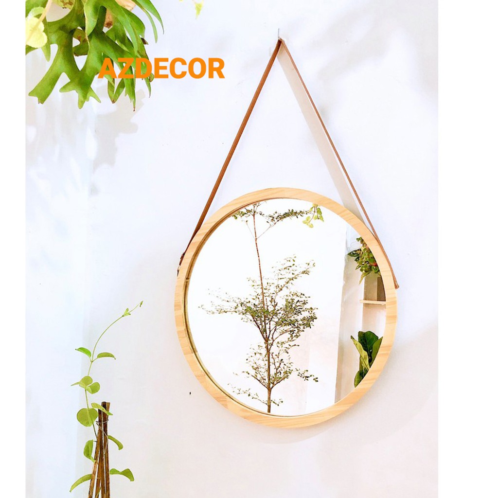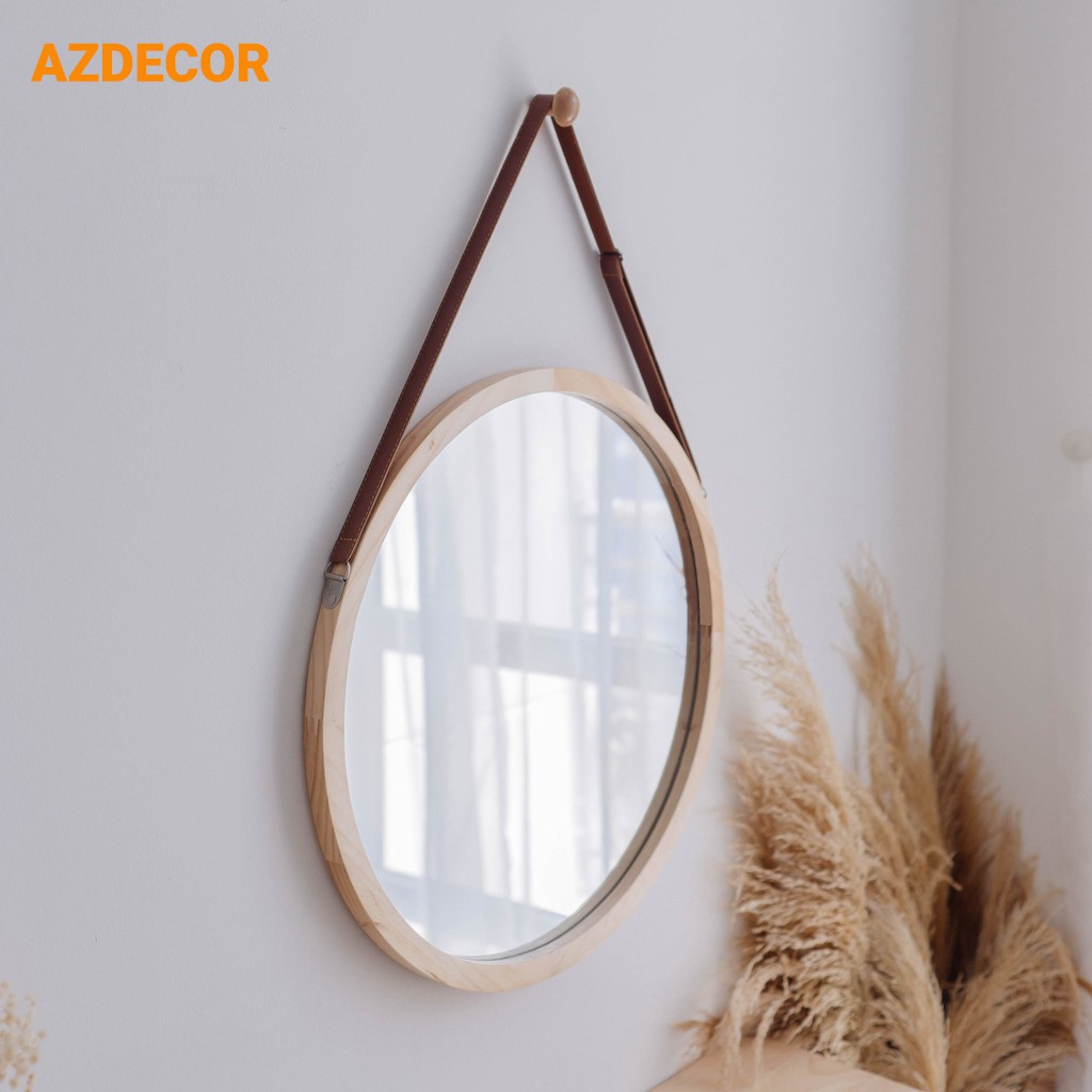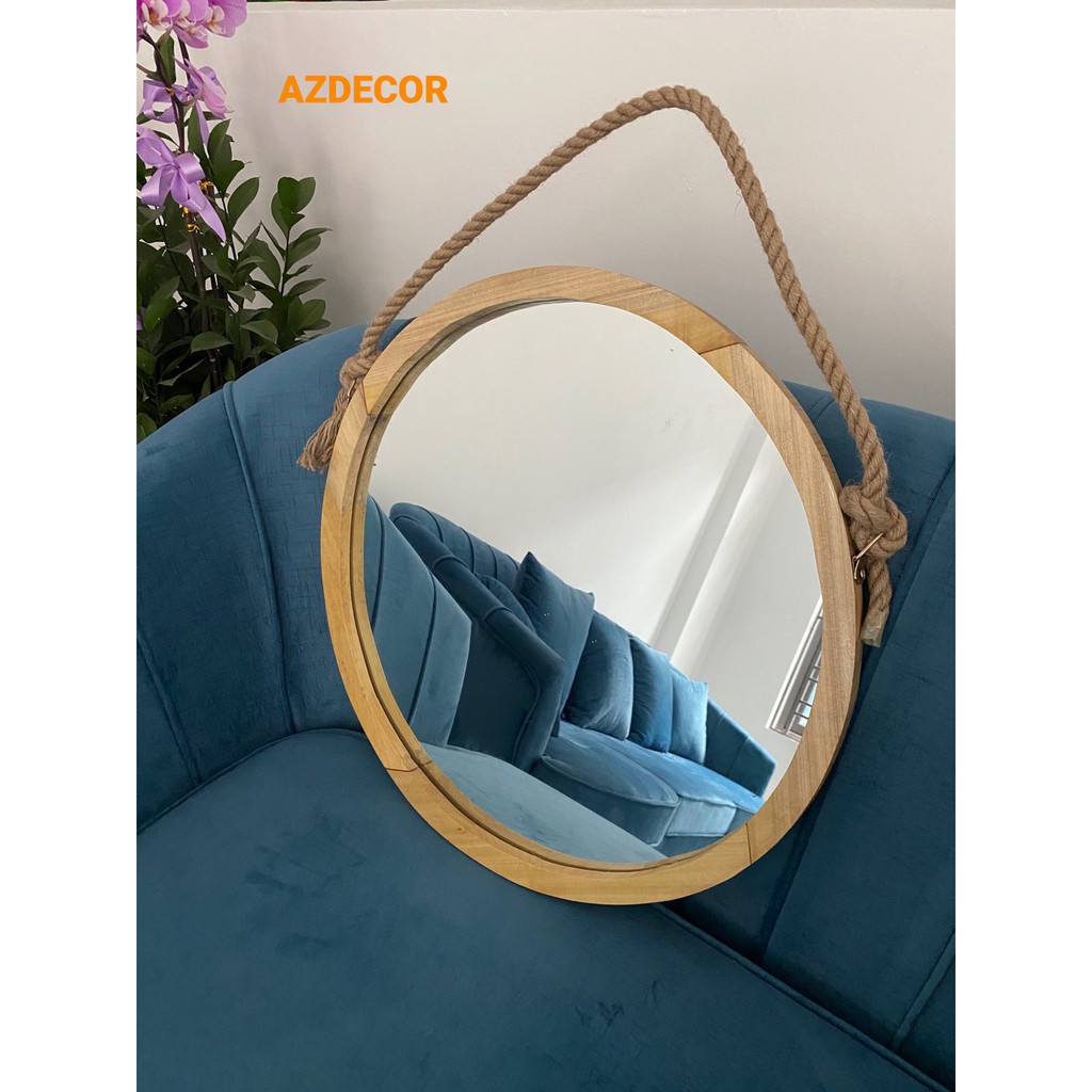 Gương Tròn Viền Gỗ Treo Dây Thừng,Dây Da, Gương Treo Tường Trang Trí Nhà Cửa