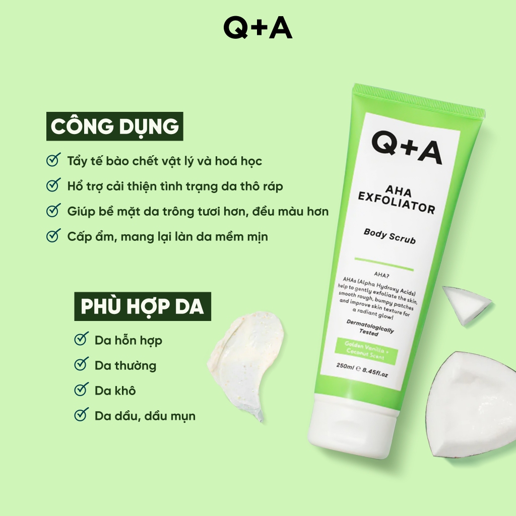 Tẩy Da Chết Cơ Thể Q+A AHA Exfoliator Body Scrub 250ml Hỗ Trợ Làm Mịn Da.