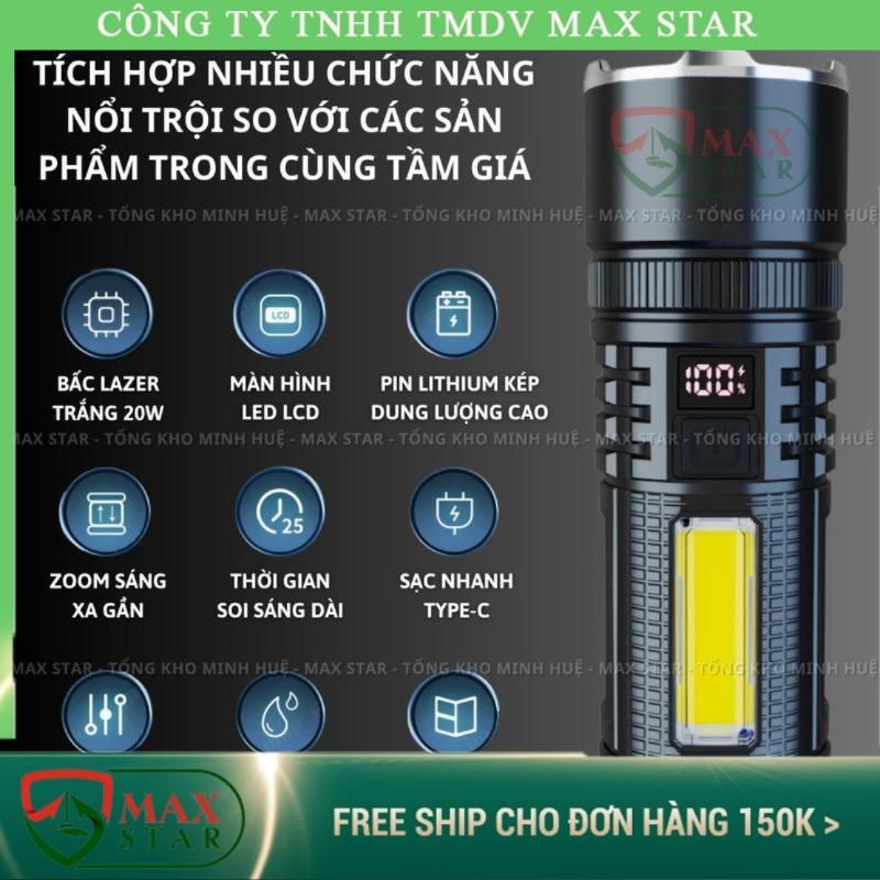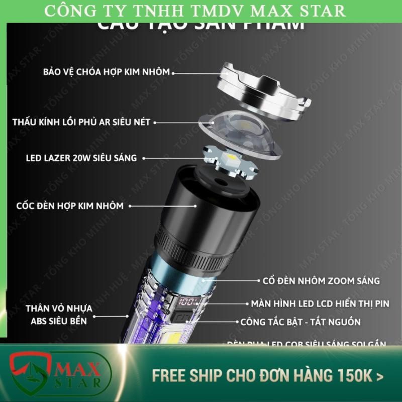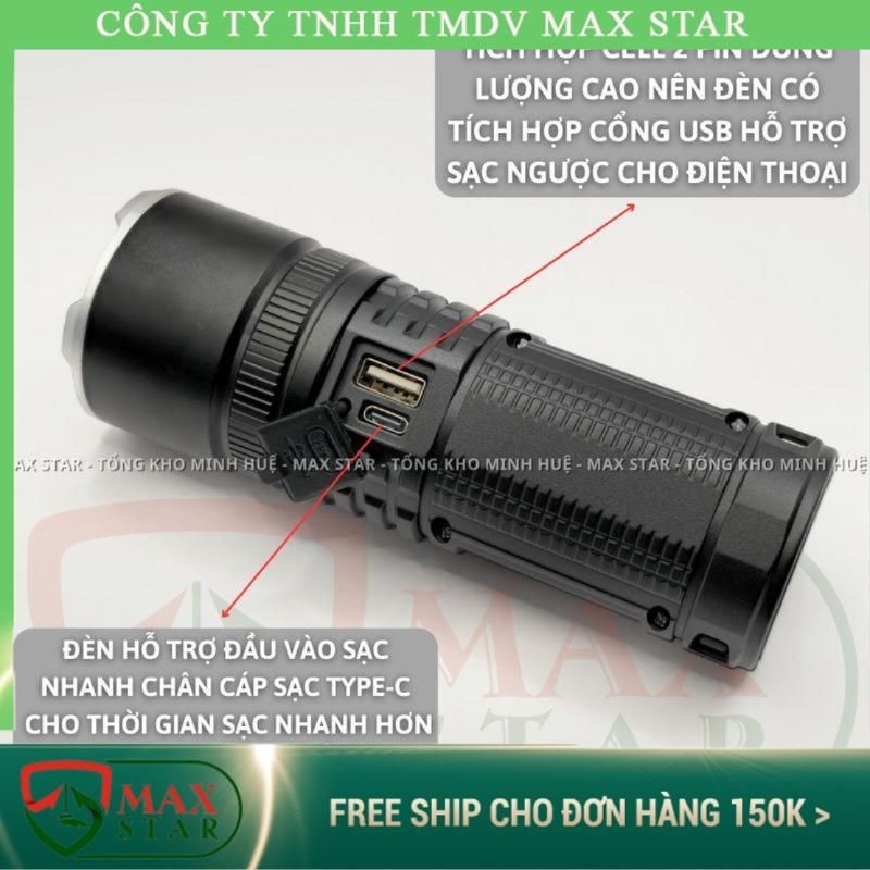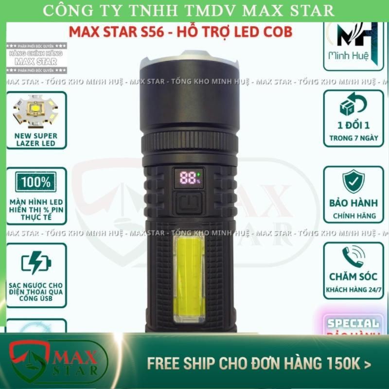 Đèn pin cầm tay MAX STAR S56 chiếu xa 500 mét có ZOOM xa gần chống nước sạc ngược cho điện thȯại