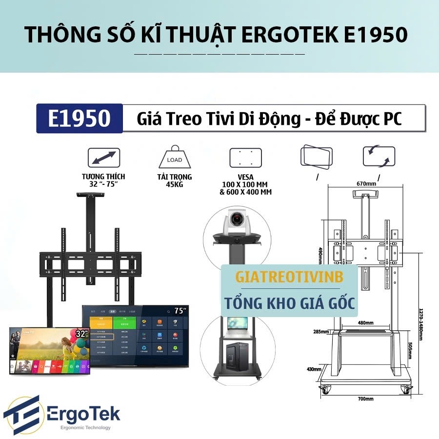 Giá Treo Tivi Di Động NB AVA1500 - ERGOTEK E1900 32 - 75 Inch Có Bánh Xe di chuyển là