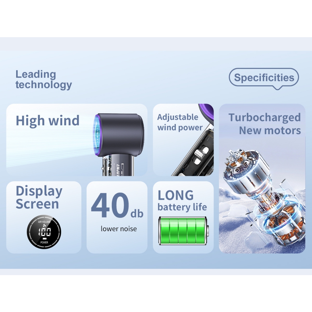 PENSOUITH Quạt Cầm Tay Cao Cấp | Con Lăn 100 Cấp Gió - LED Hiển Thị Pin - Sử Dụng Đến 8H | Bảo Hành 12T