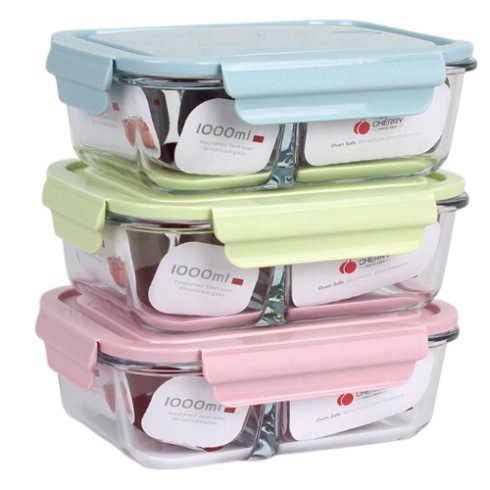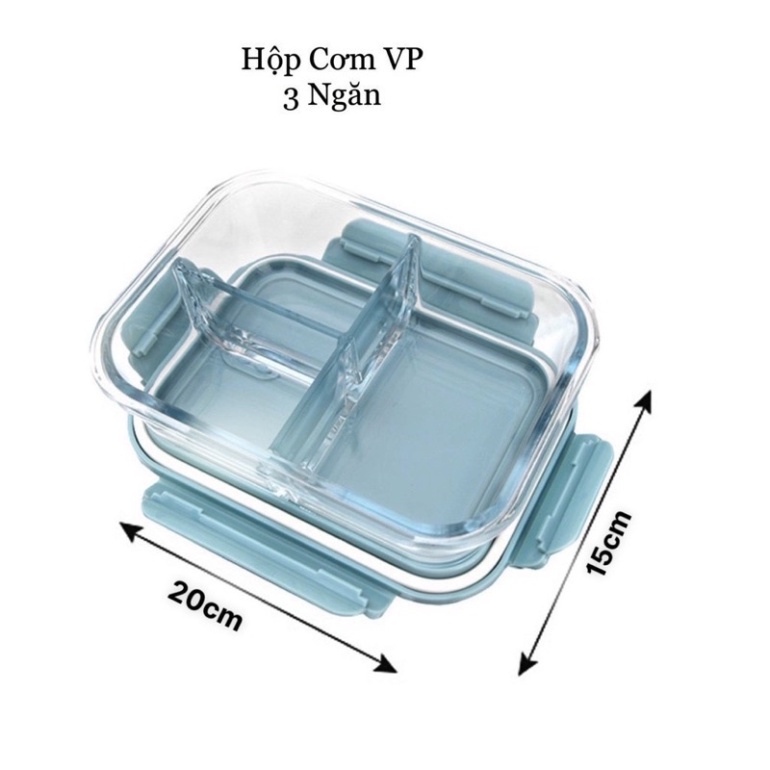 [SaLe 87%] Hộp Thủy Tinh Đựng Thực Ăn 3 Ngăn ,Nắp Chống Tràn,Quay Được Lò Vi Sóng .[SBX]