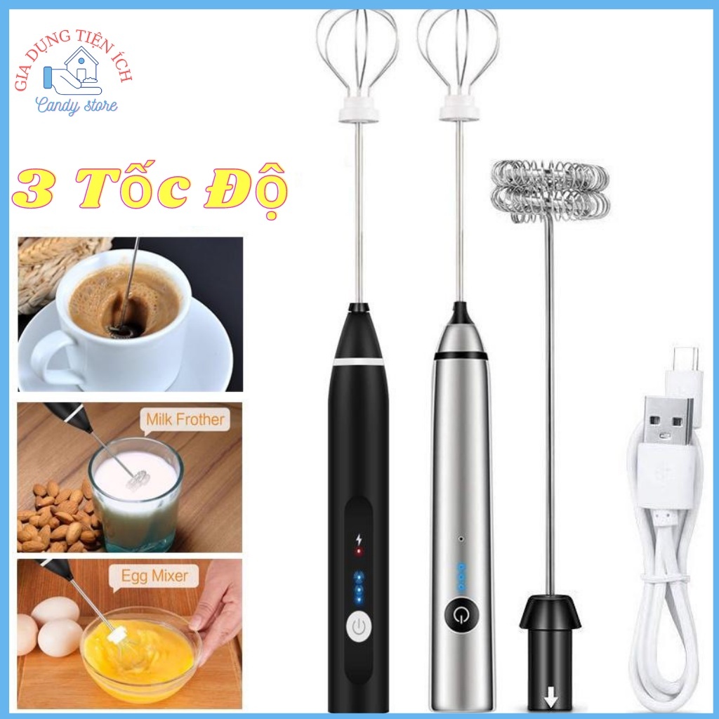 [SaLe 88%] Máy Đánh Trứng ,Tạo Bọt CaFFe, Milk Frother 3 Tốc Độ Loại Sạc Điện. [SBX]