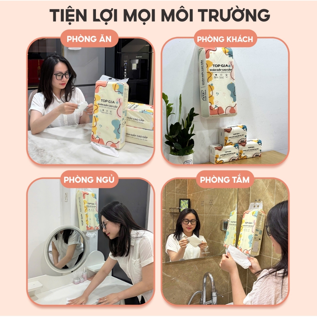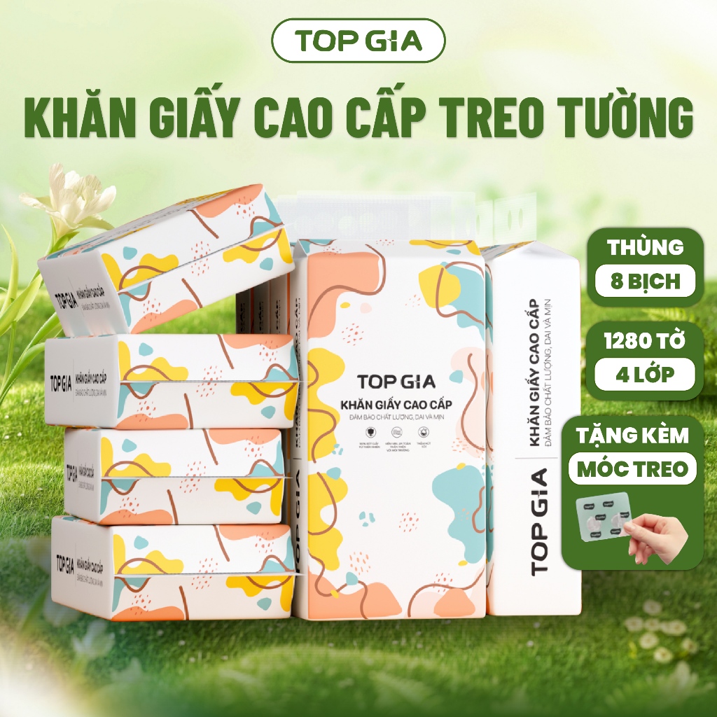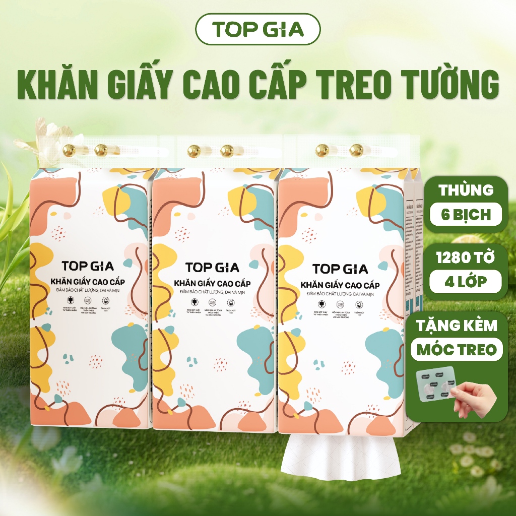 Khăn Giấy Rút Treo Tường Top Gia Thùng 4 Bịch Đa Sắc 1280 Tờ 4 Lớp, Bột Giấy Từ Thiên Nhiên An Toàn Cho Sức Khỏe