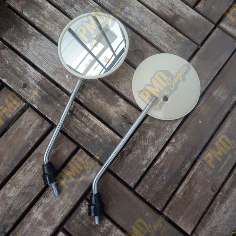 Gương chiếu hậu, kính chiếu hậu tròn 8mm màu trắng ngà dành cho xe cub các loại