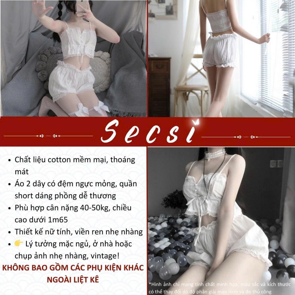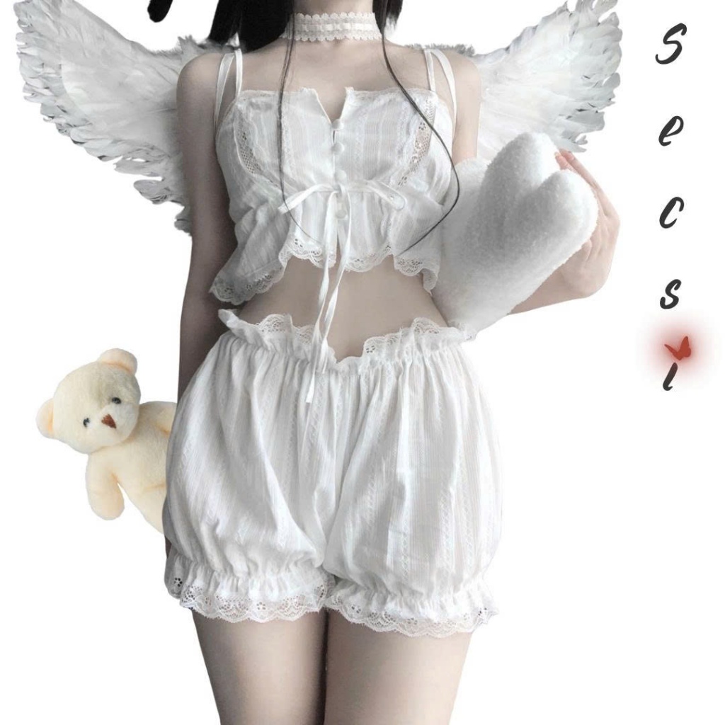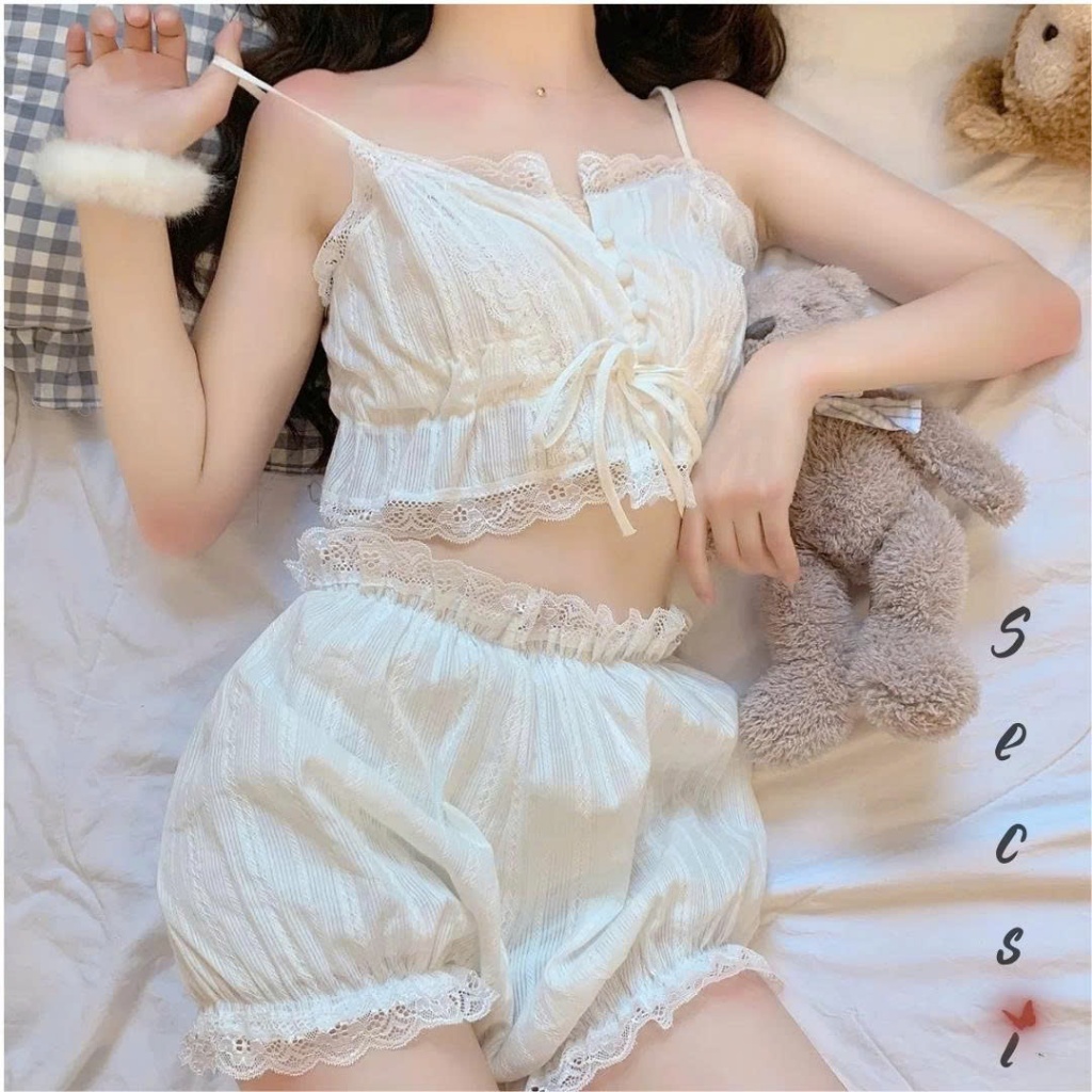 Bộ ngủ nữ họa tiết ren sexy quyến rũ, set ngủ 2 dây gợi cảm - Secsi
