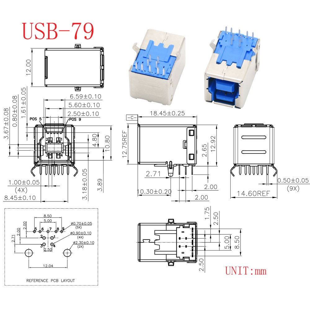 10 Chiếc USB Loại A / B 2.0 / 3.0 Cổng Tiêu Chuẩn Nam Cắm Nữ Hàn Jack Kết Nối PCB Ổ Cắm