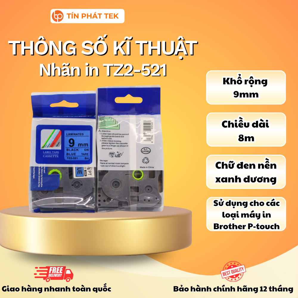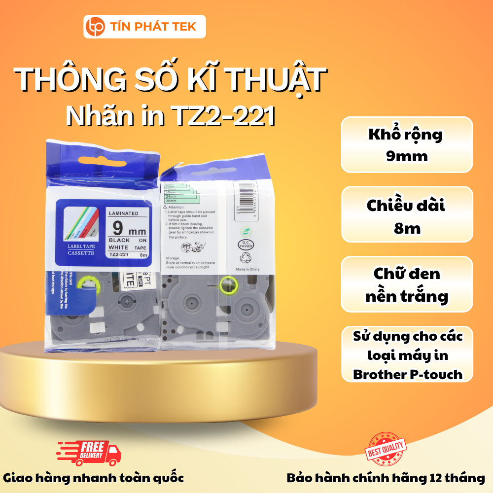 [Combo máy và nhãn in] Máy in nhãn PUTY PT-100E và 5 nhãn in TZ2- PZe khổ rộng 9mm x dài 8m