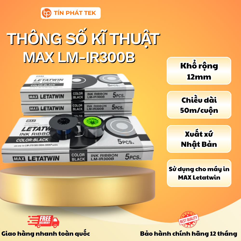 Mực in ống lồng MAX LM-IR300B, rộng 12mm, dài 50m/cuộn, sử dụng cho các loại máy in ống lồng MAX