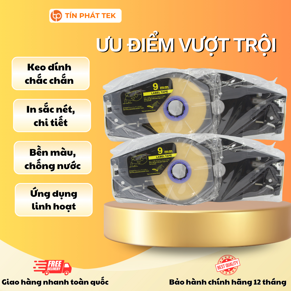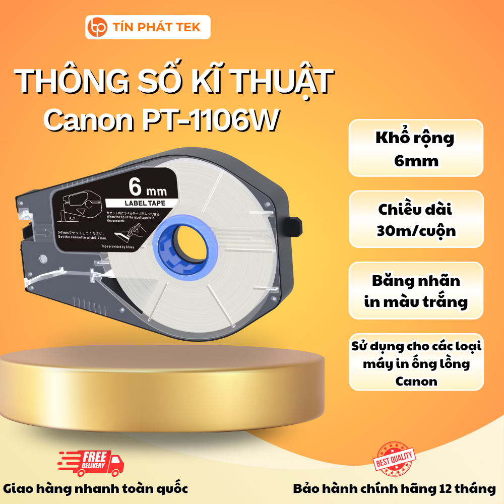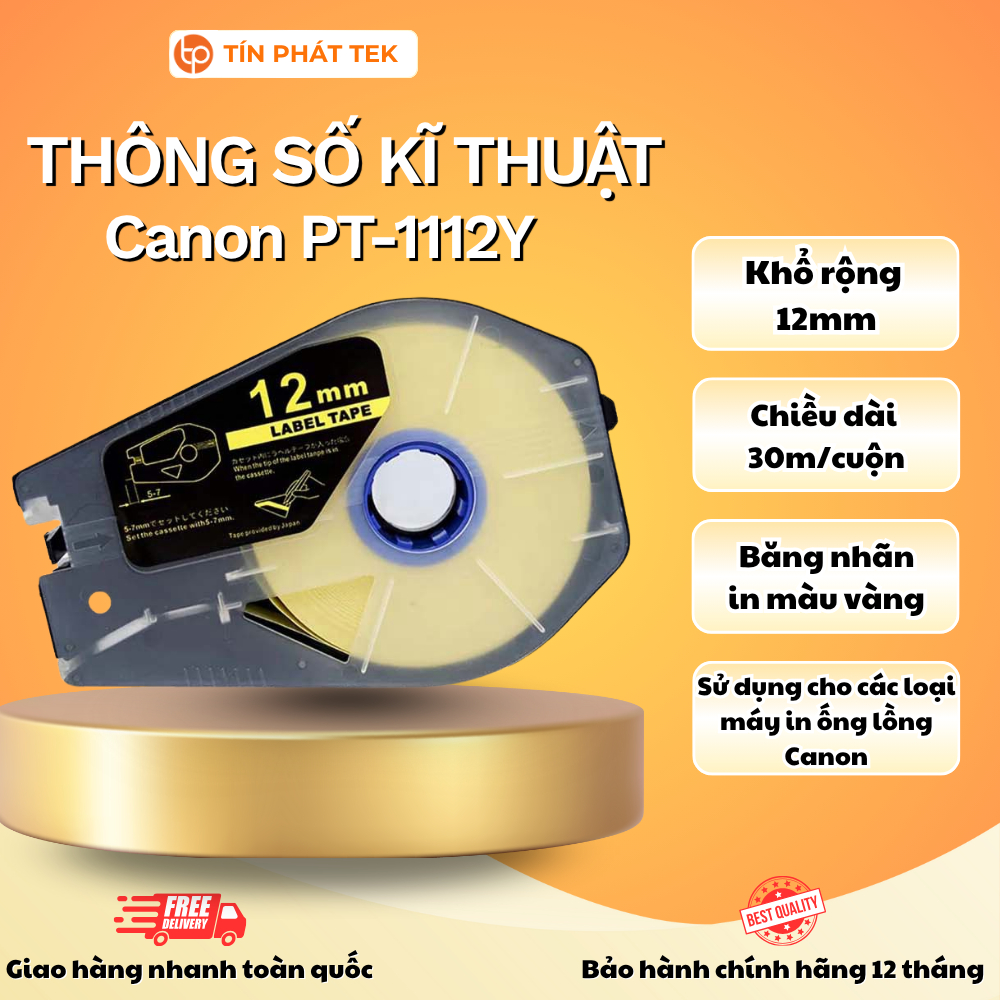 Băng nhãn in Canon, rộng 6mm/9mm/12mm, dài 30m/cuộn, màu trắng/vàng, sử dụng cho máy in ống Canon