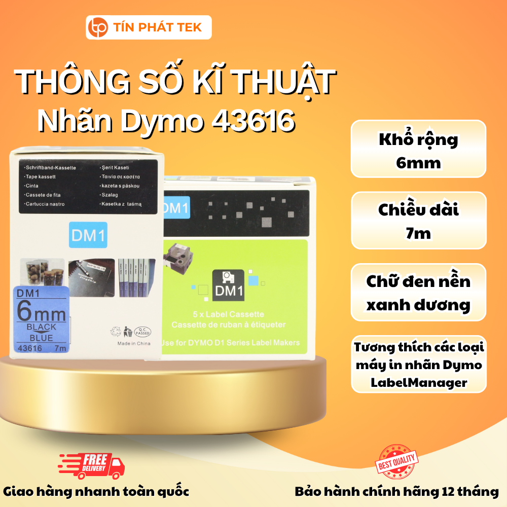 Nhãn in Dymo khổ 6mm x 7m, màu sắc trắng/vàng/đỏ/xanh dương, dùng cho máy in nhãn Dymo LabelManager