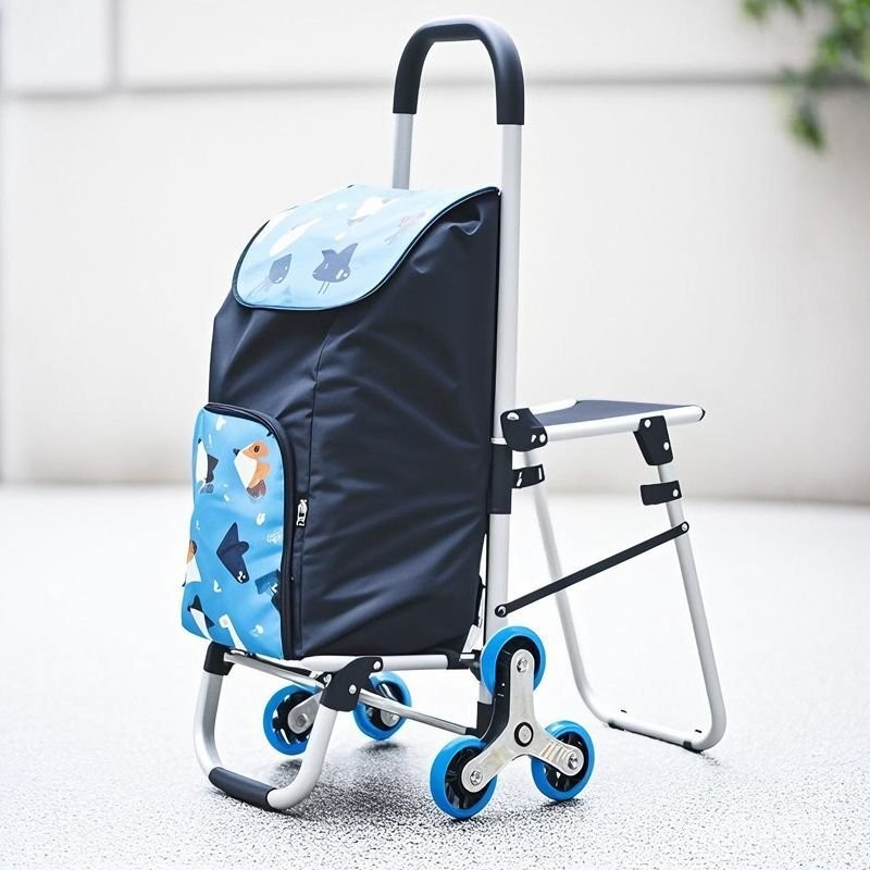 M42Q Xe đẩy mua sắm cho người già, hợp kim nhôm, nhẹ, leo cầu thang, tay cầm gấp, xe đẩy cầm tay di động gia đình