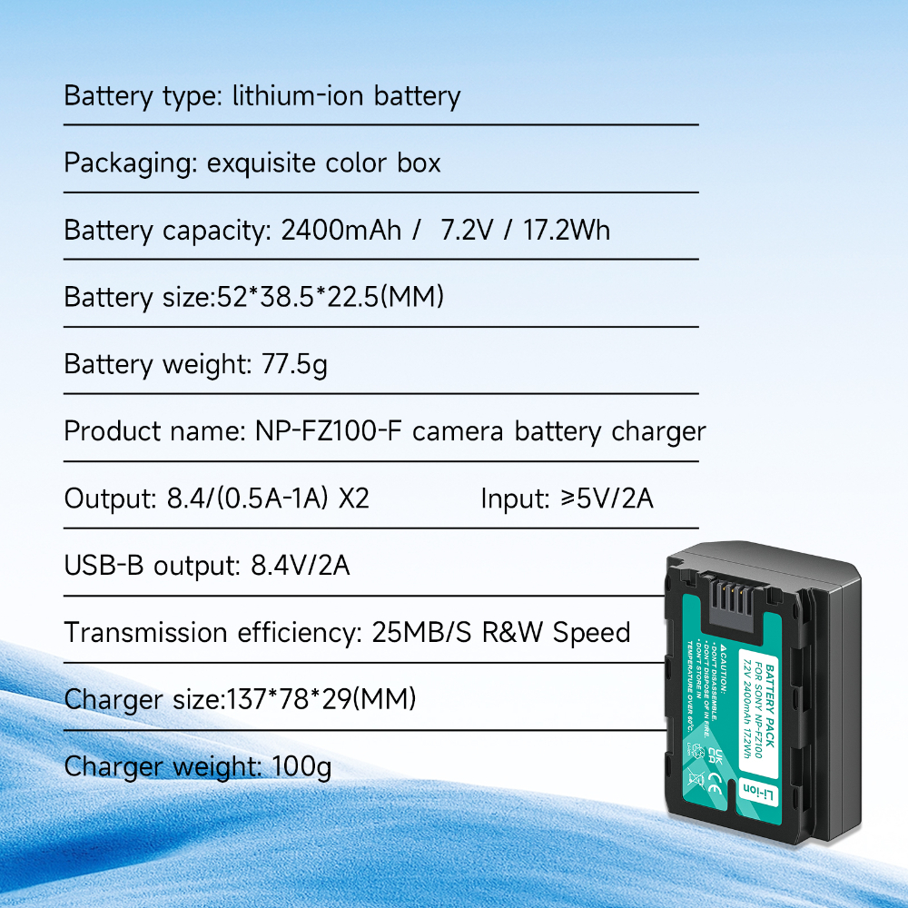 PALO Pin Sony NP-FZ100 Bộ 2 Pin + Sạc Đôi FZ100 2400mAh Cho Sony A7 III A7 IV A7RIII A7R IV A9 A6600
