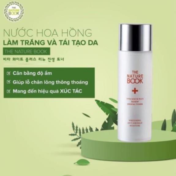 Nước hoa hồng dưỡng trắng tái tạo da Hàn Quốc The Nature Book phiên bản trắng hồng Vita White Plus Renew Jinseng Toner