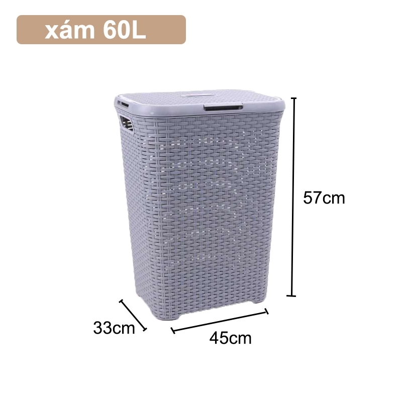 Giỏ đồ giặt 60L đa năng với nắp đậy chắc chắn, lý tưởng để đựng quần áo và đồ dùng gia đình hàng ngày.1