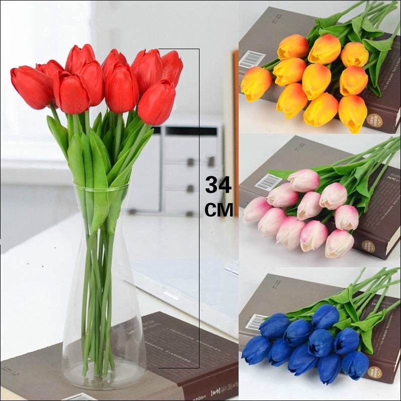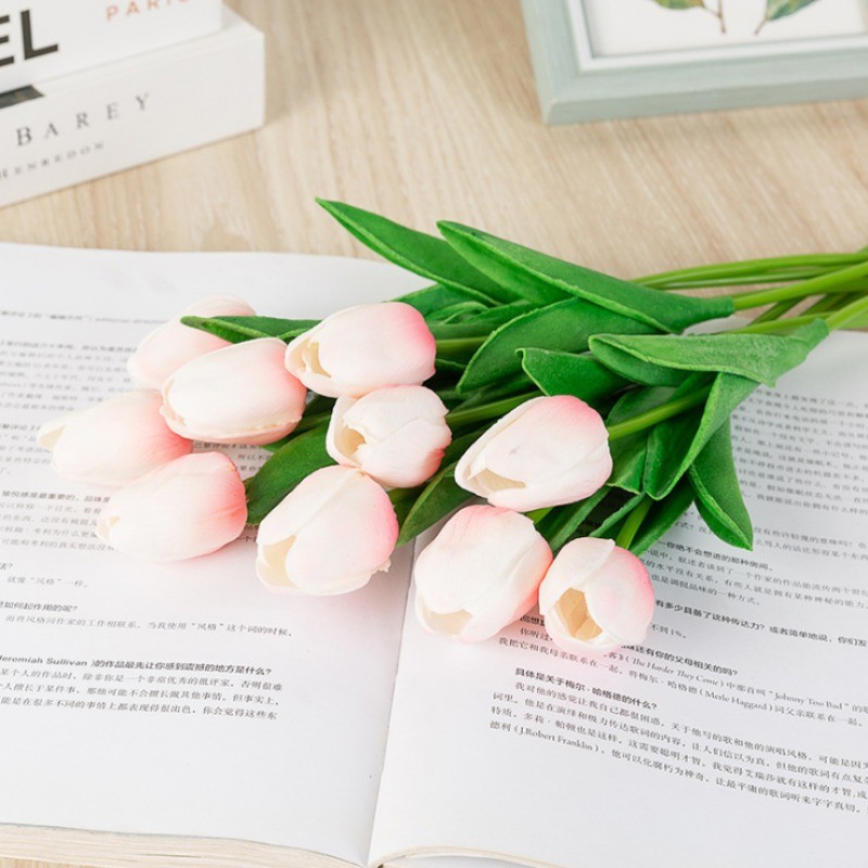 10 Chiếc Real Touch Tulip & Hoa Hồng Nhân Tạo - Bó Hoa Cưới & Bộ Trang Trí Nhà, Cao Su Cảm Ứng Thực Tế