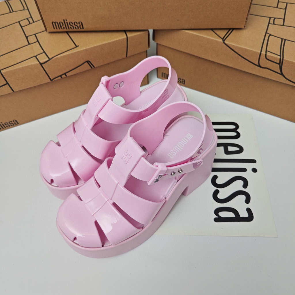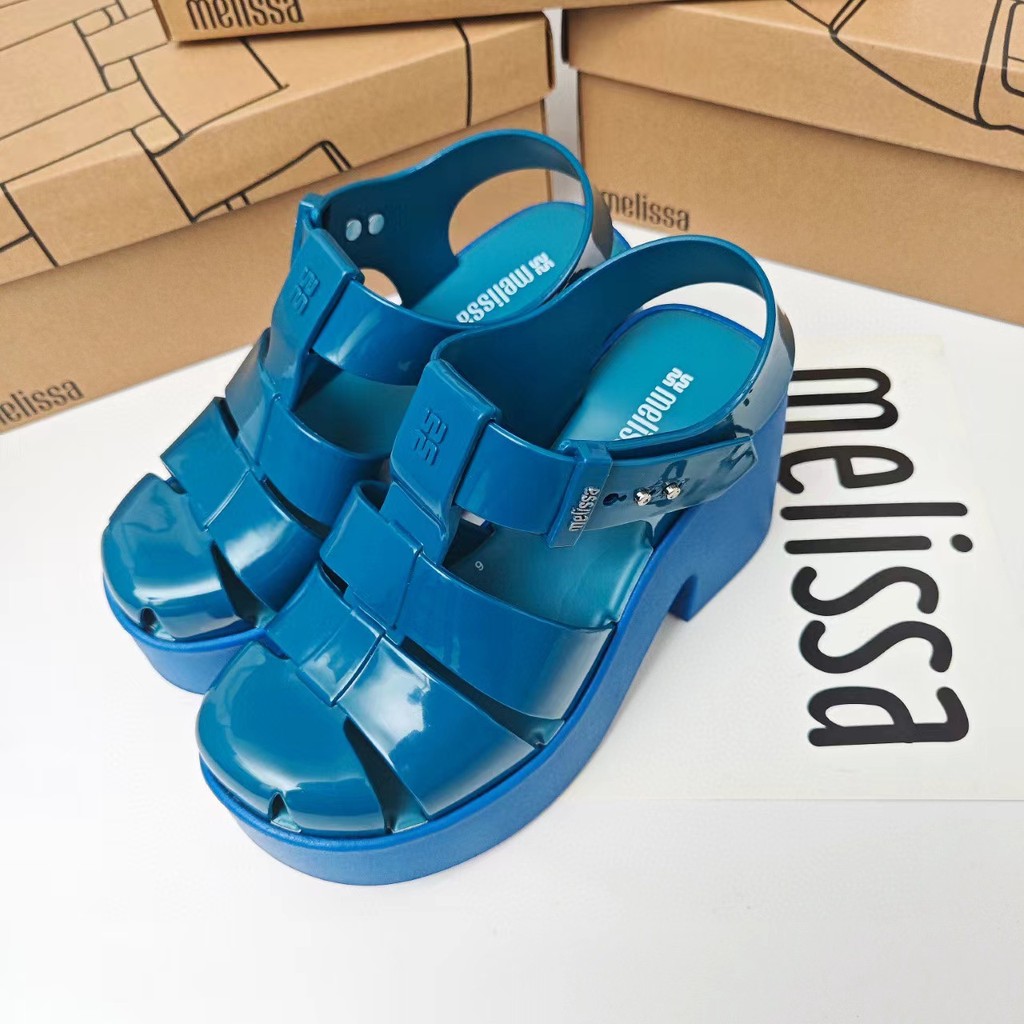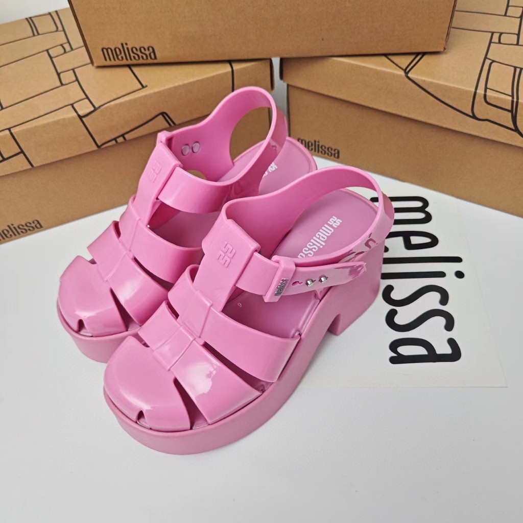Melisas Jelly Giày Nữ Cutout Cao Gót La Mã Dép Đi Biển Ren Mùi Hương