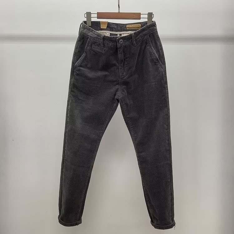 Quần ống thẳng Corduroy Nam Mỹ Retro