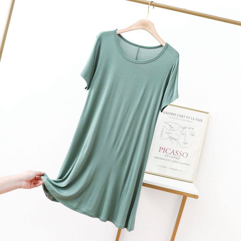 Bé Gái Trơn Nửa Tay Một Mảnh Đầm Modal Lớn Co Giãn Rời Thường Ngày Giữa Chiều Dài Đầm Xuân Hè Plus Size Đầm Nữ Béo MM Lo