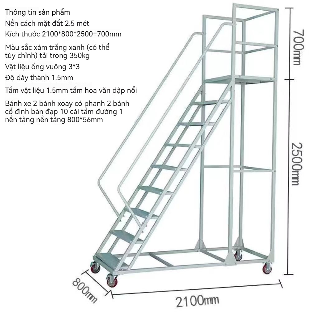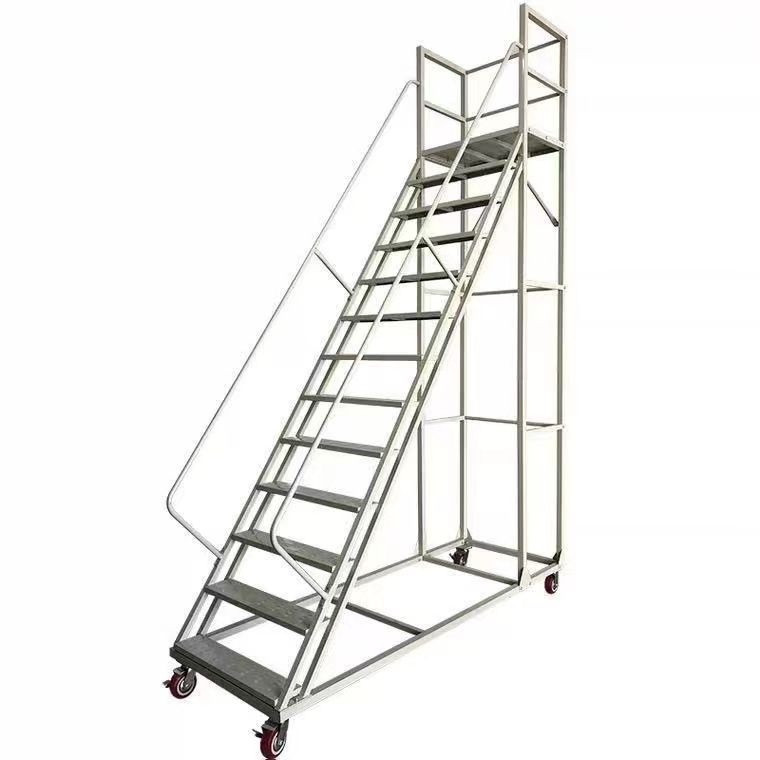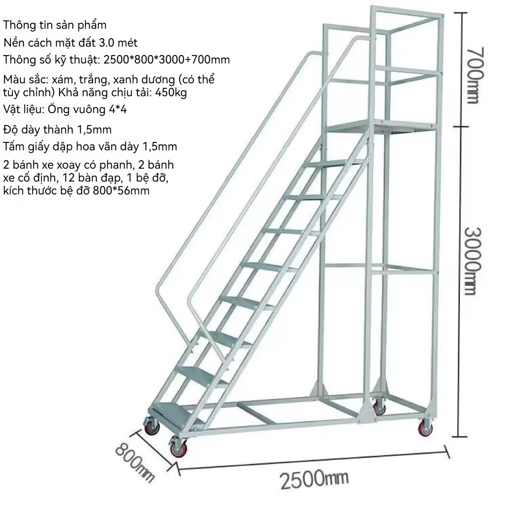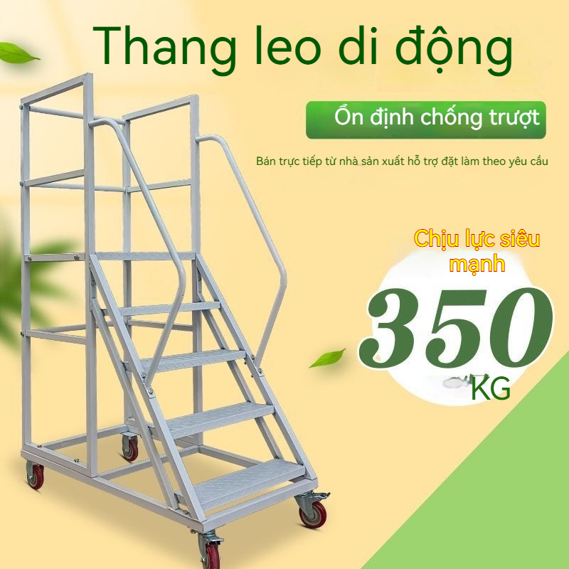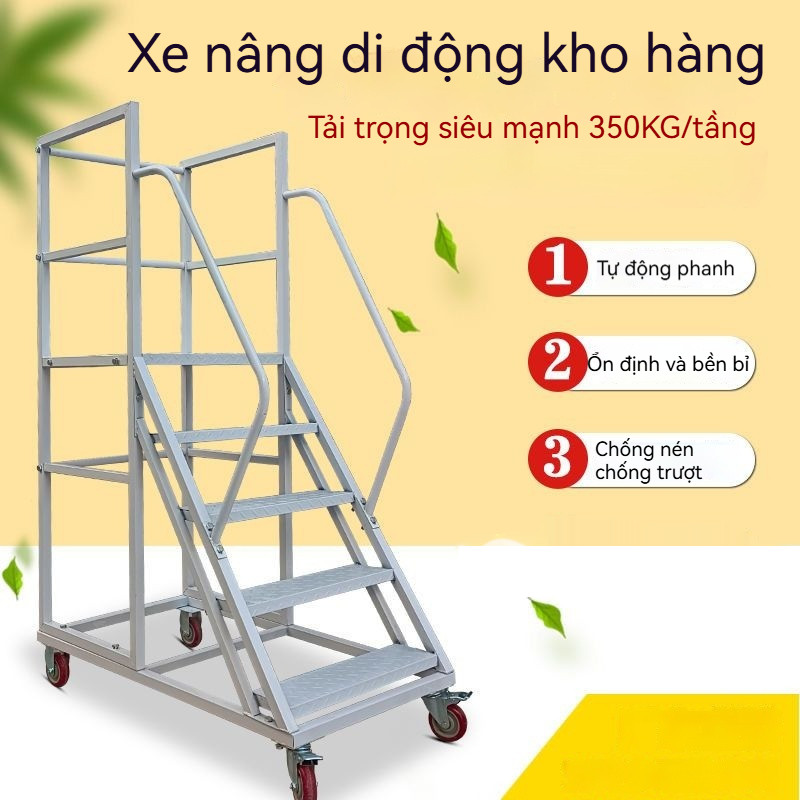Xưởng siêu thị, bục di động có bánh xe, thang leo. Thang leo để lấy hàng. Thang leo di động.