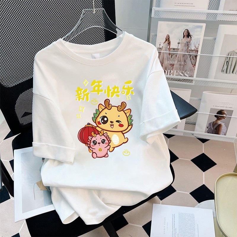 Áo thun unisex in hình ngựa, phong cách thời trang 2026, áo thun nữ chủ đề lễ hội in 2D, tay ngắn, màu đỏ.