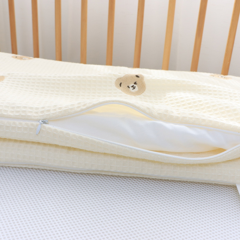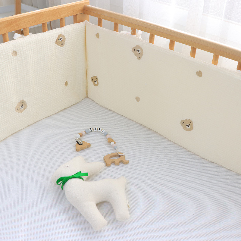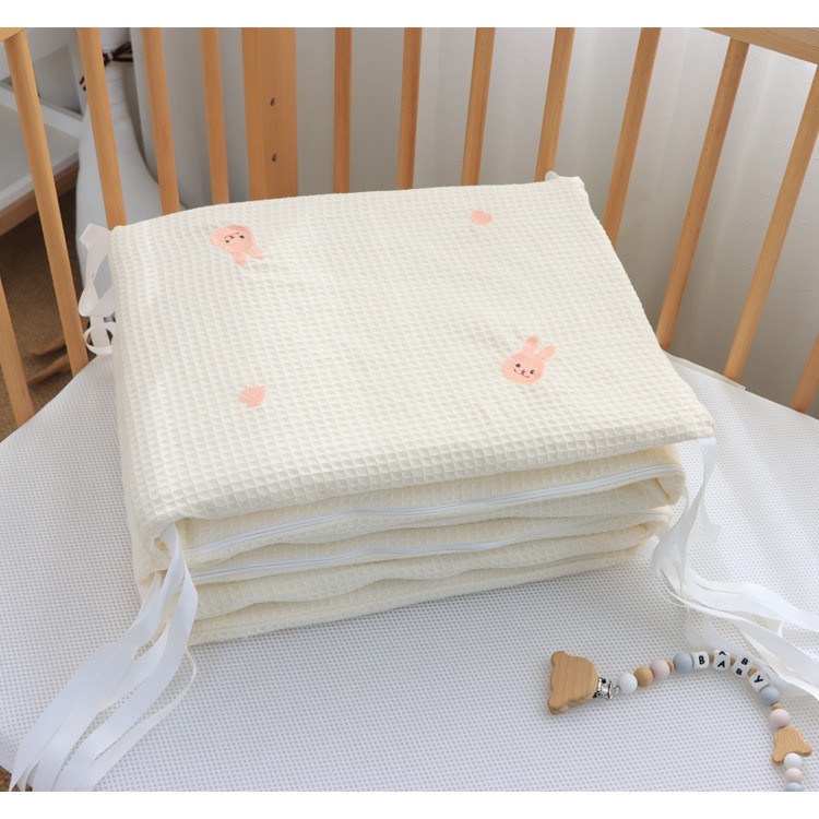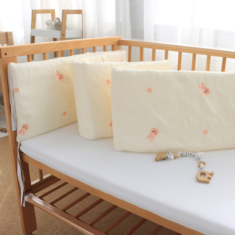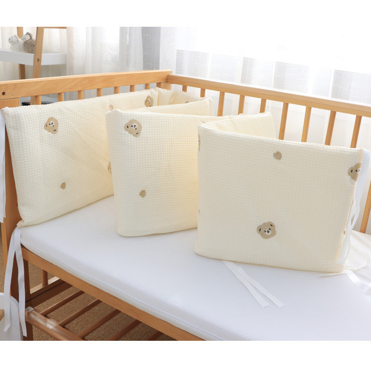 Chắn giường cho trẻ sơ sinh bằng cotton nguyên chất, thêu họa tiết waffle, thanh chắn giường cho trẻ em, đồ trải giường