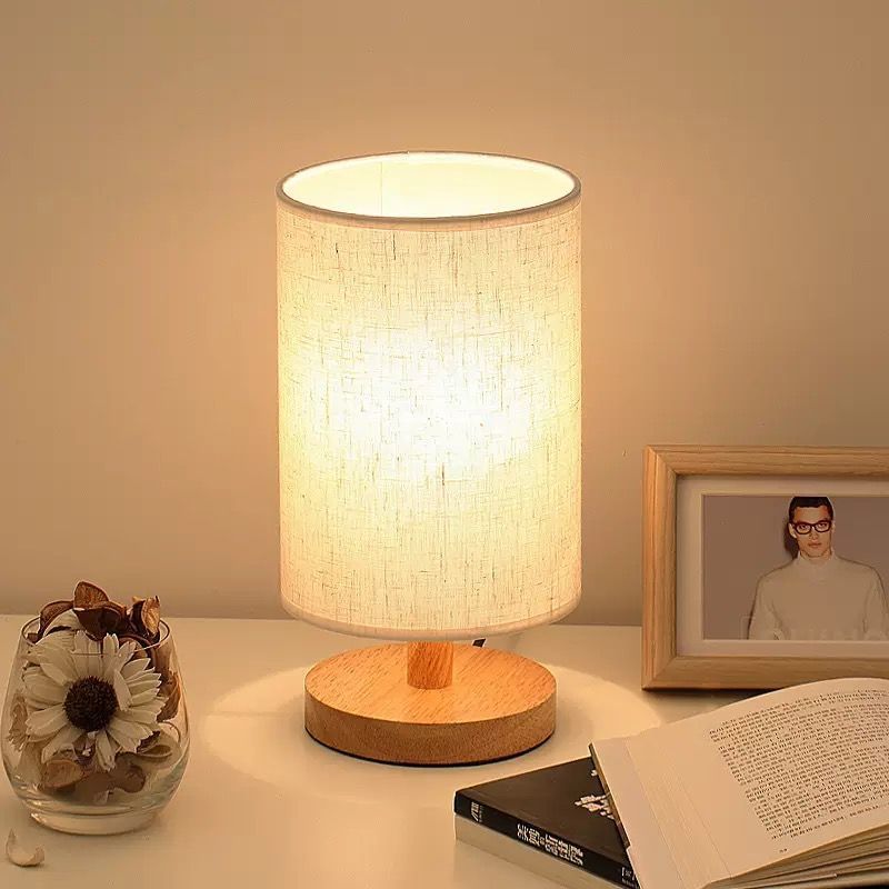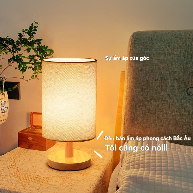 Đèn bàn vải Nordic có điều khiển từ xa, đèn ngủ có thể điều chỉnh độ sáng, ánh sáng dịu nhẹ