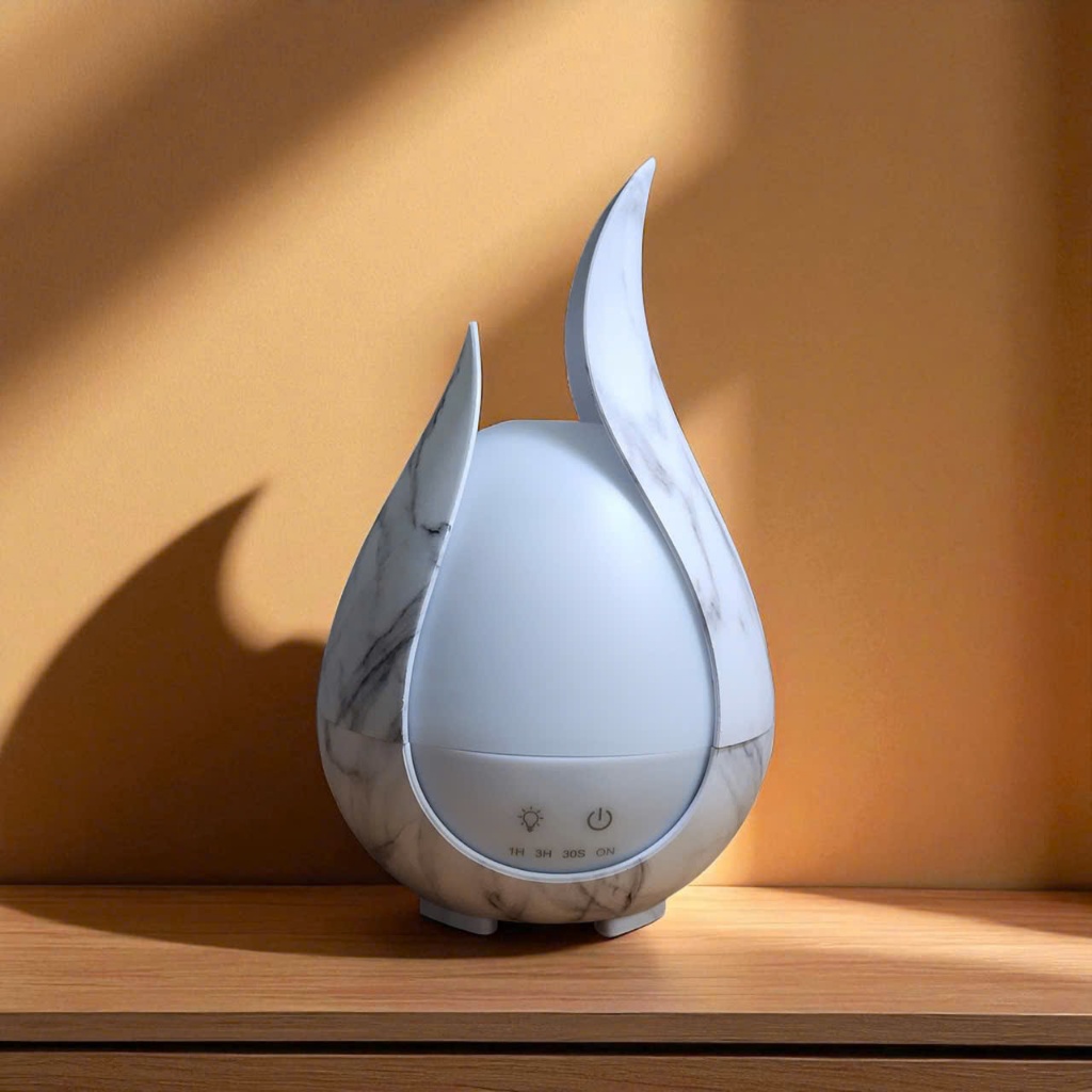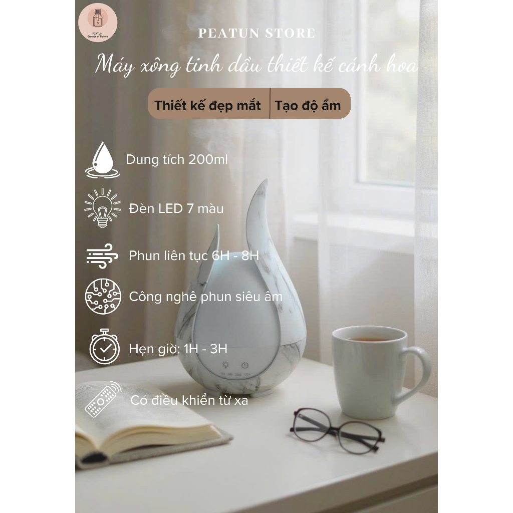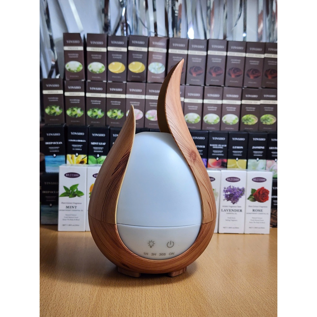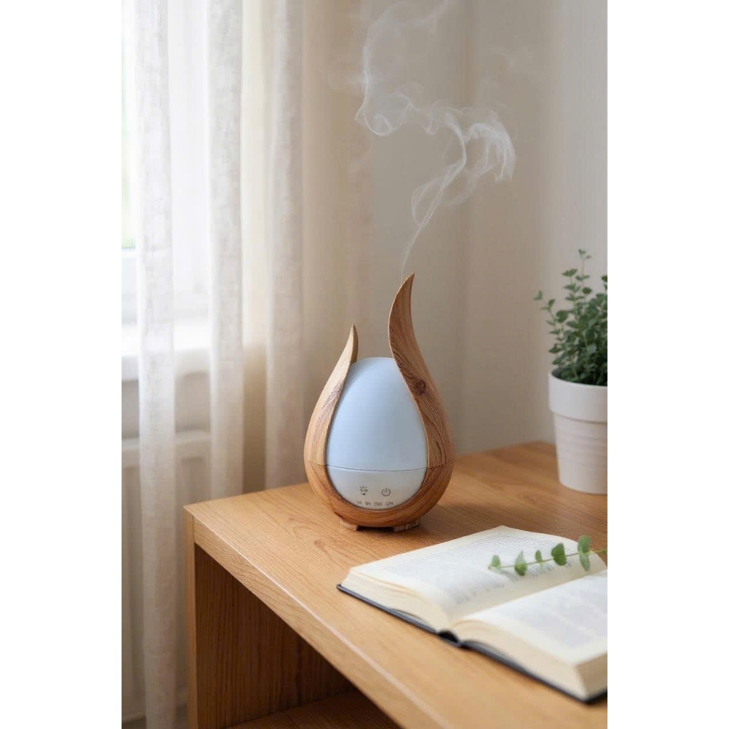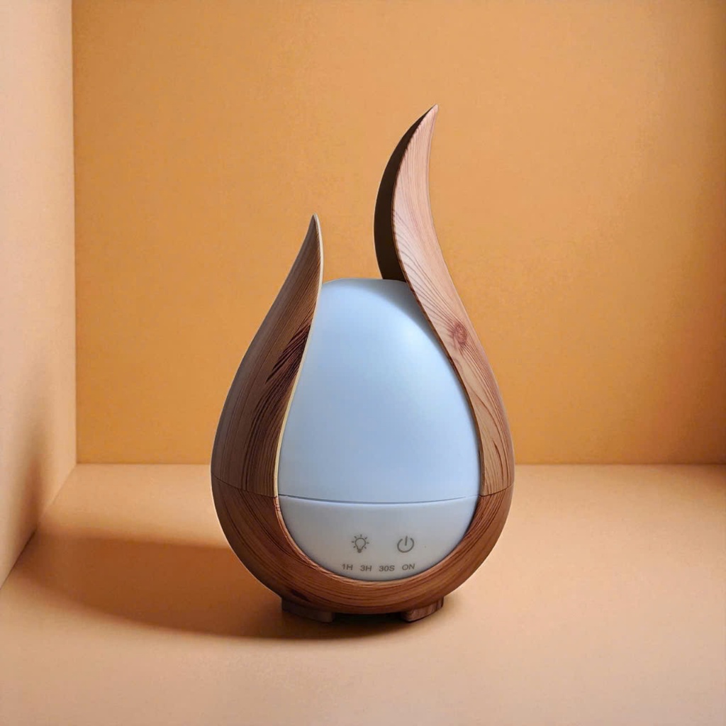Máy Khuếch Tán Tinh Dầu & Tạo Ẩm Vân Gỗ Mini 200ml Có Điều Khiển Từ Xa– Kiểu Cánh Hoa Sáng Tạo
