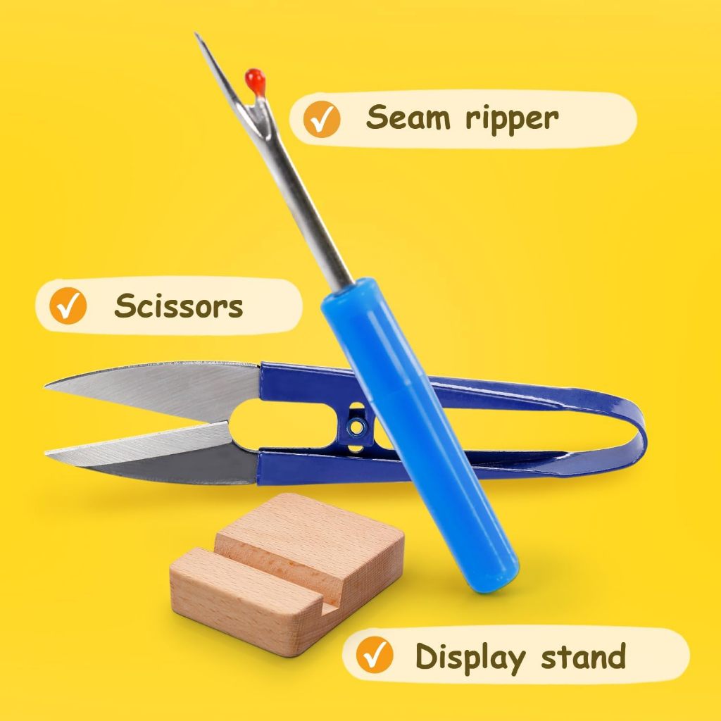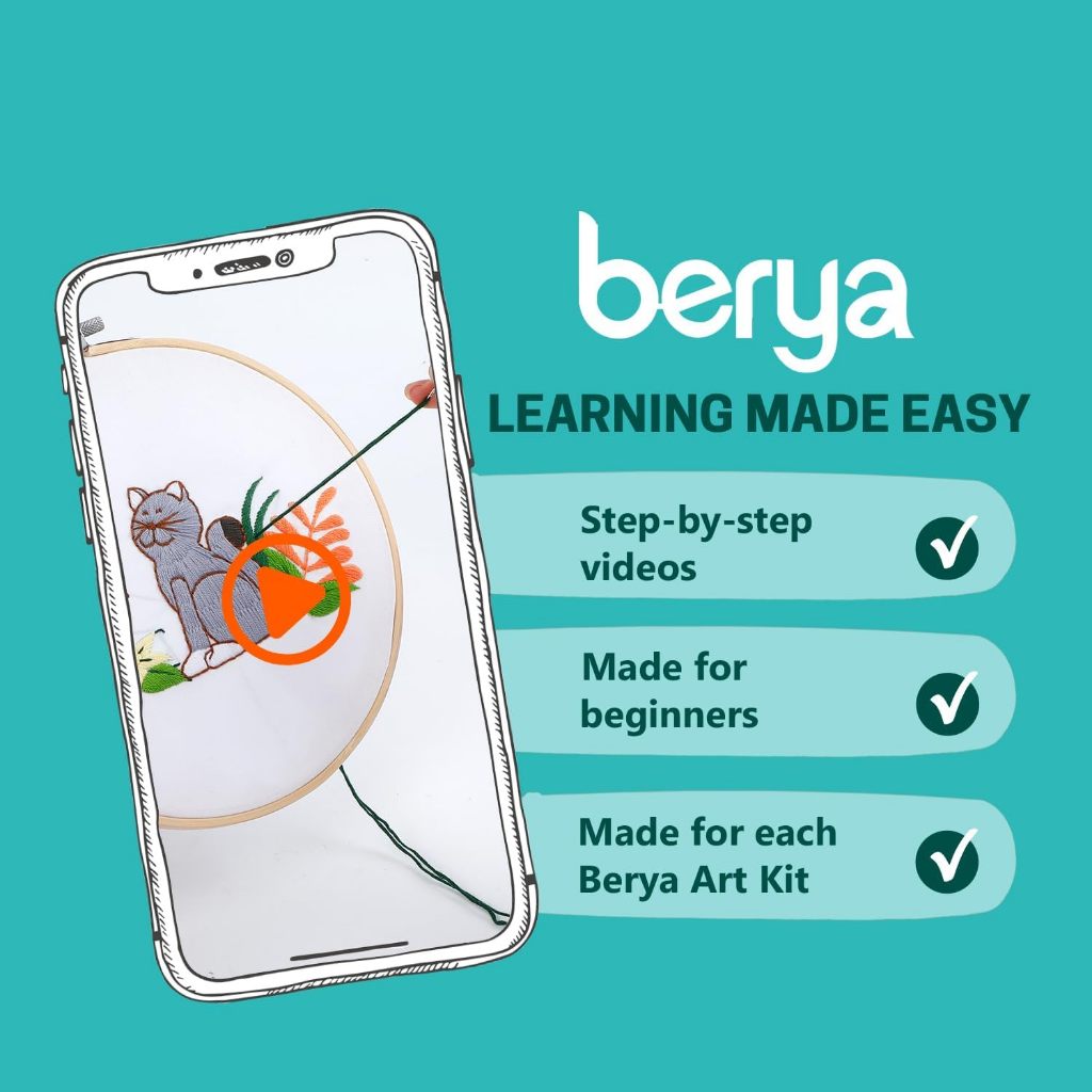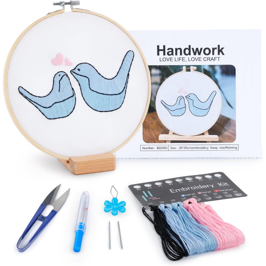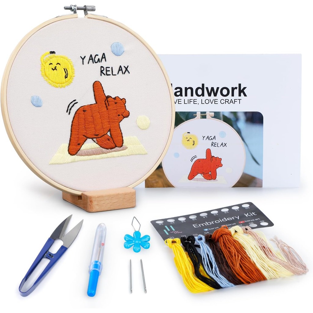 Bộ dụng cụ thực hành khâu thêu cho người mới bắt đầu, Học 30 miếng khâu khác nhau Bộ dụng cụ kim chỉ, có hướng dẫn & Video, Vải in, Vòng, Sợi màu,