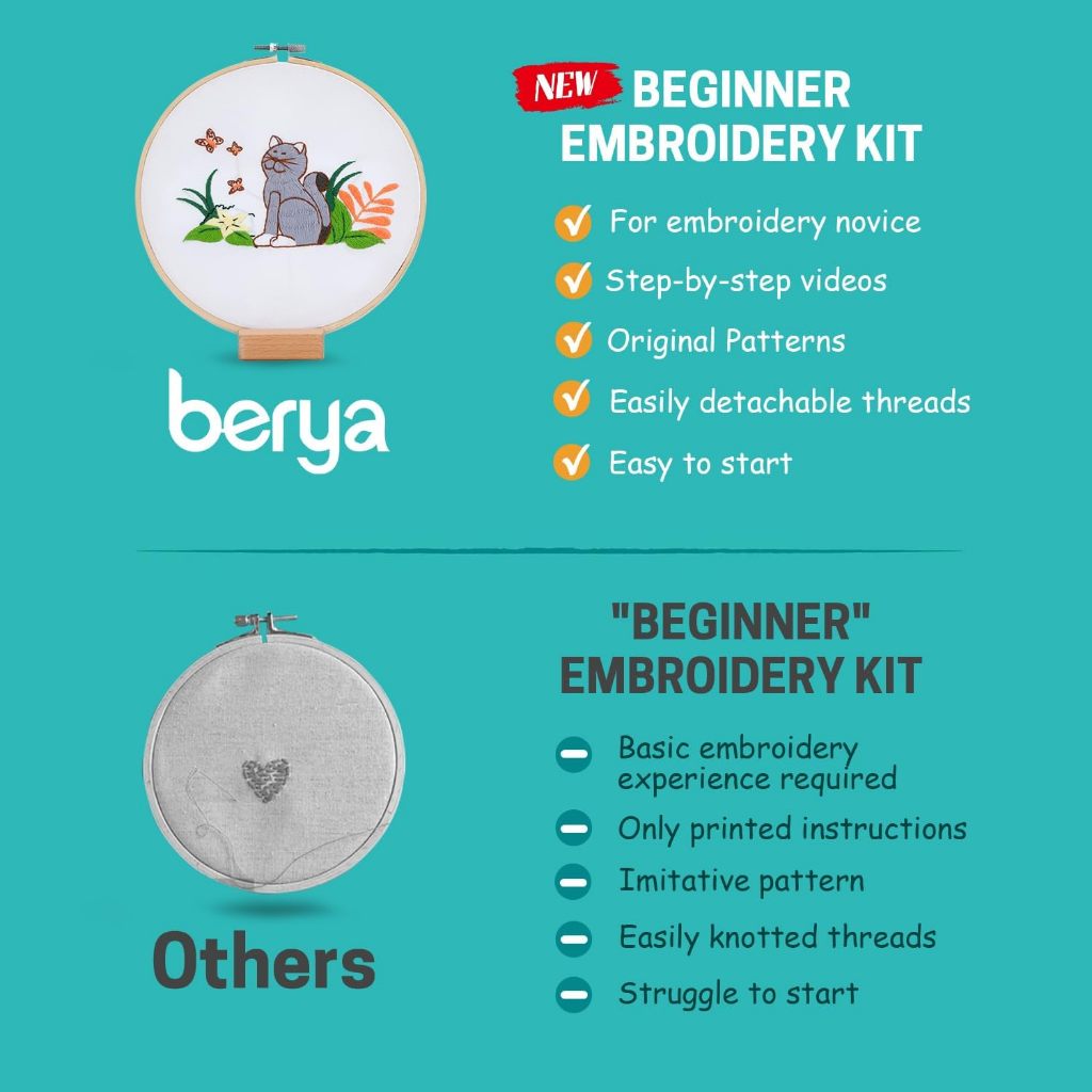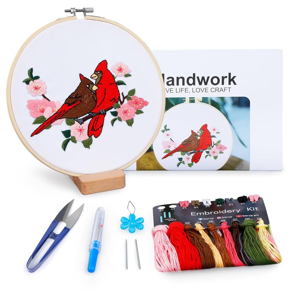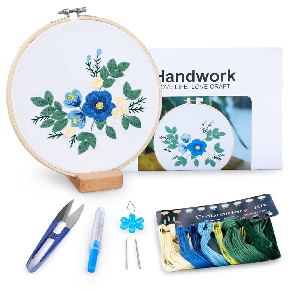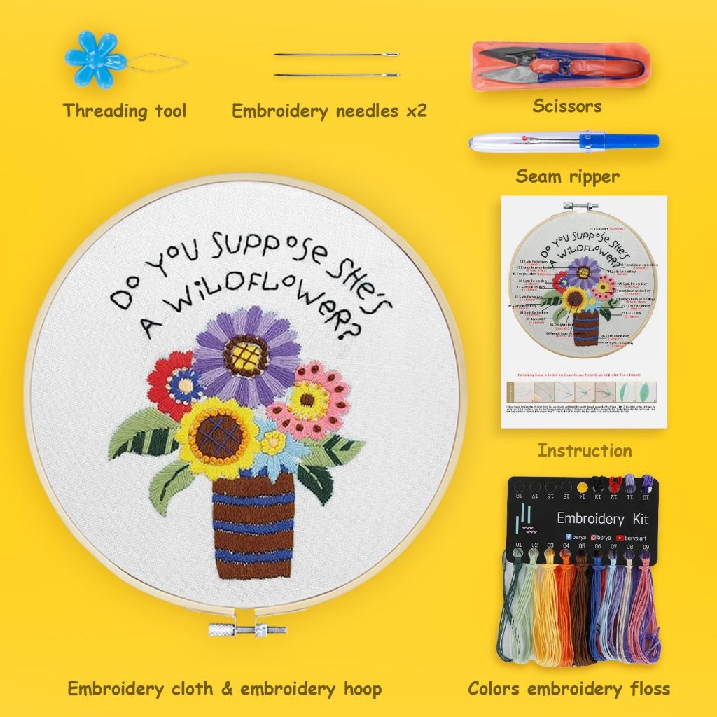 Bộ dụng cụ thực hành khâu thêu cho người mới bắt đầu, Học 30 miếng khâu khác nhau Bộ dụng cụ kim chỉ, có hướng dẫn & Video, Vải in, Vòng, Sợi màu,