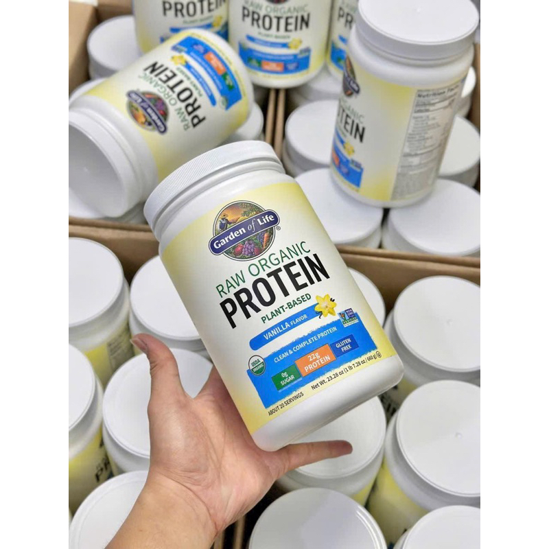 BỘT ĐẠM HỮU CƠ KHÔNG ĐƯỜNG HƯƠNG VANI CỦA MỸ GARDEN OF LIFE RAW ORGANIC PROTEIN PLANT - BASED VANILLA FLAVOR HỘP 666G