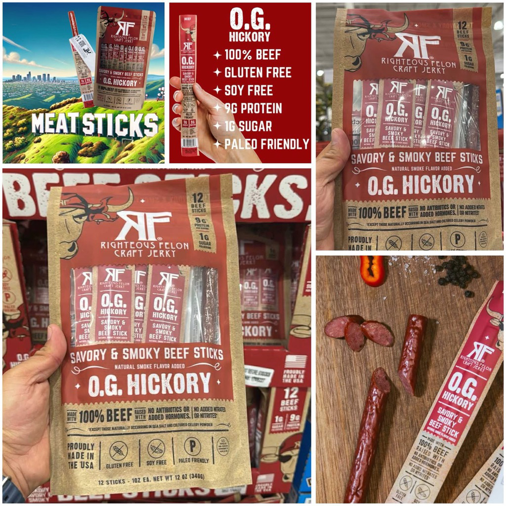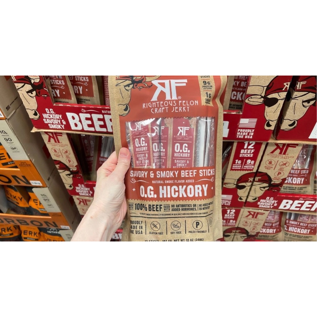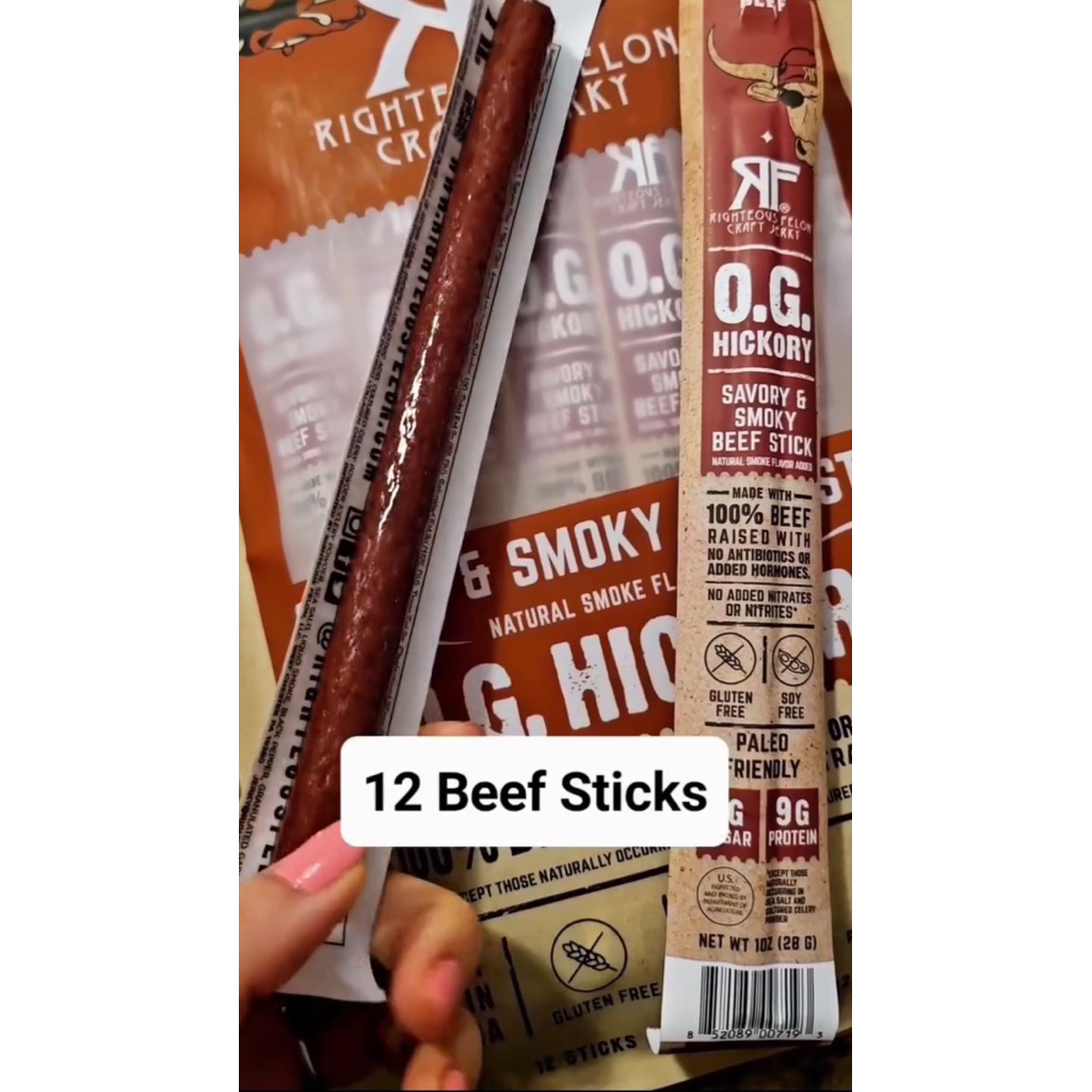 🥩 KHÔ BÒ QUE HUN KHÓI GỖ BẮC MỸ CHÂU ÂU HICKORY RF RIGHTEOUS FELON CRAFT JERKY SAVORY SMOKY BEEF STICKS OG 12 THANH 340G