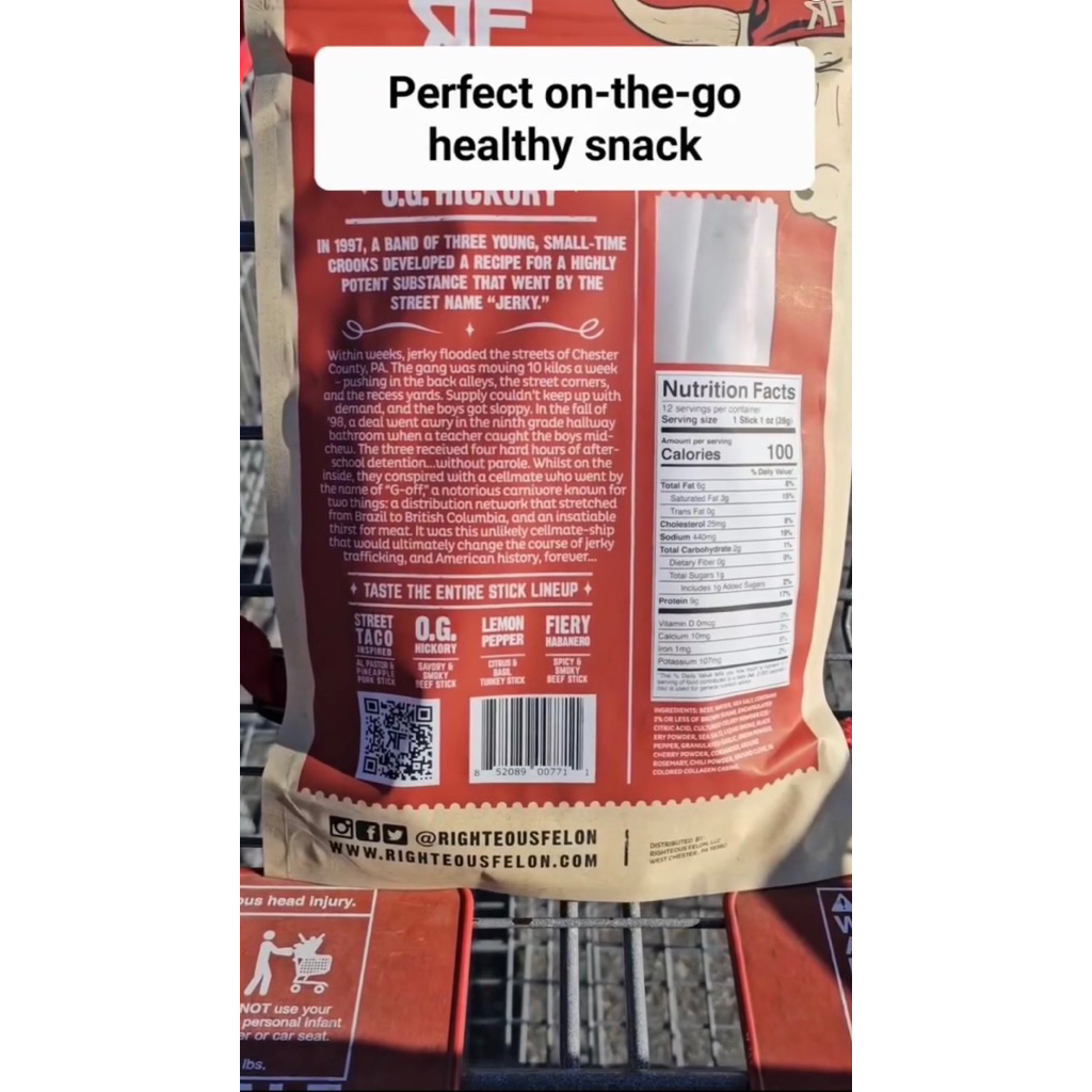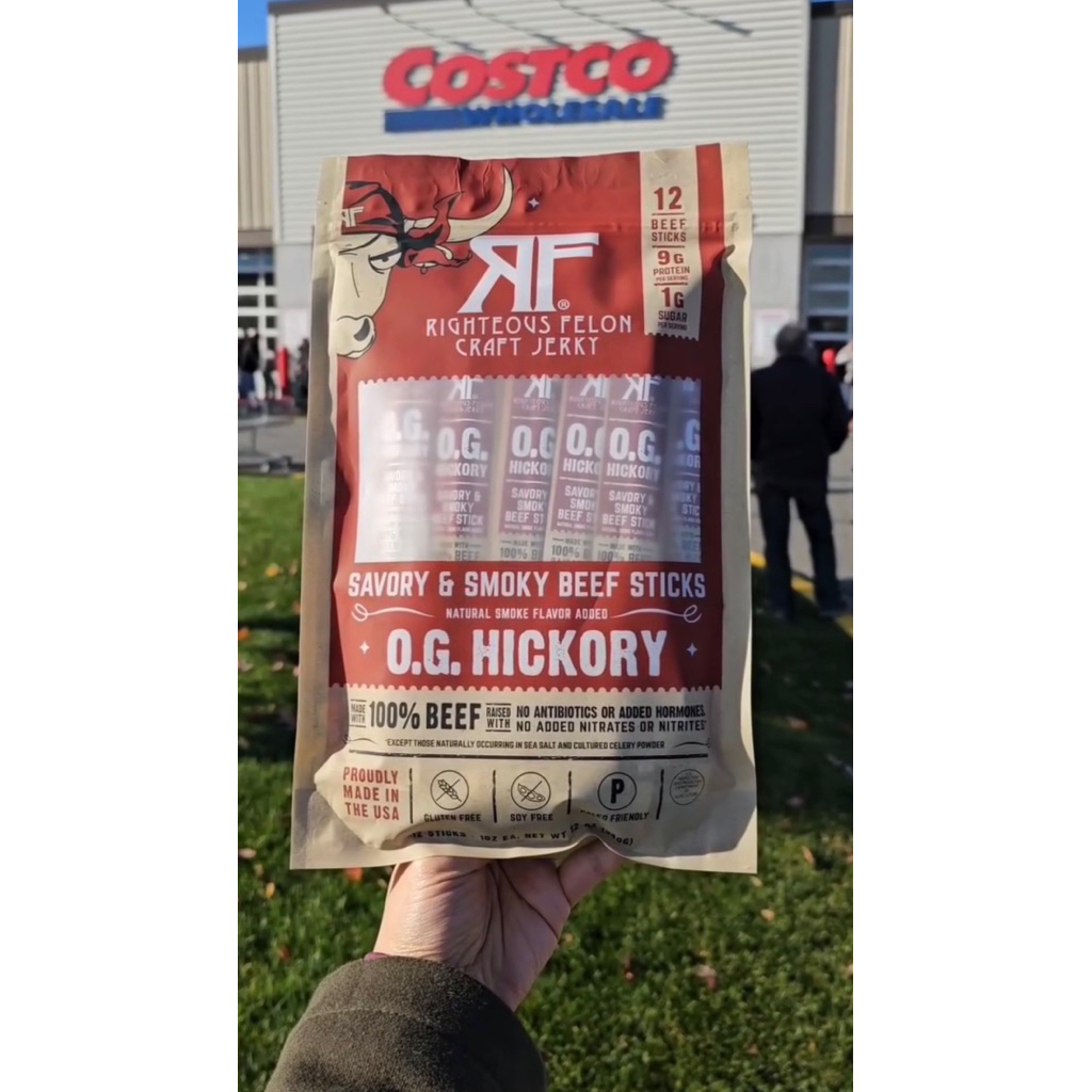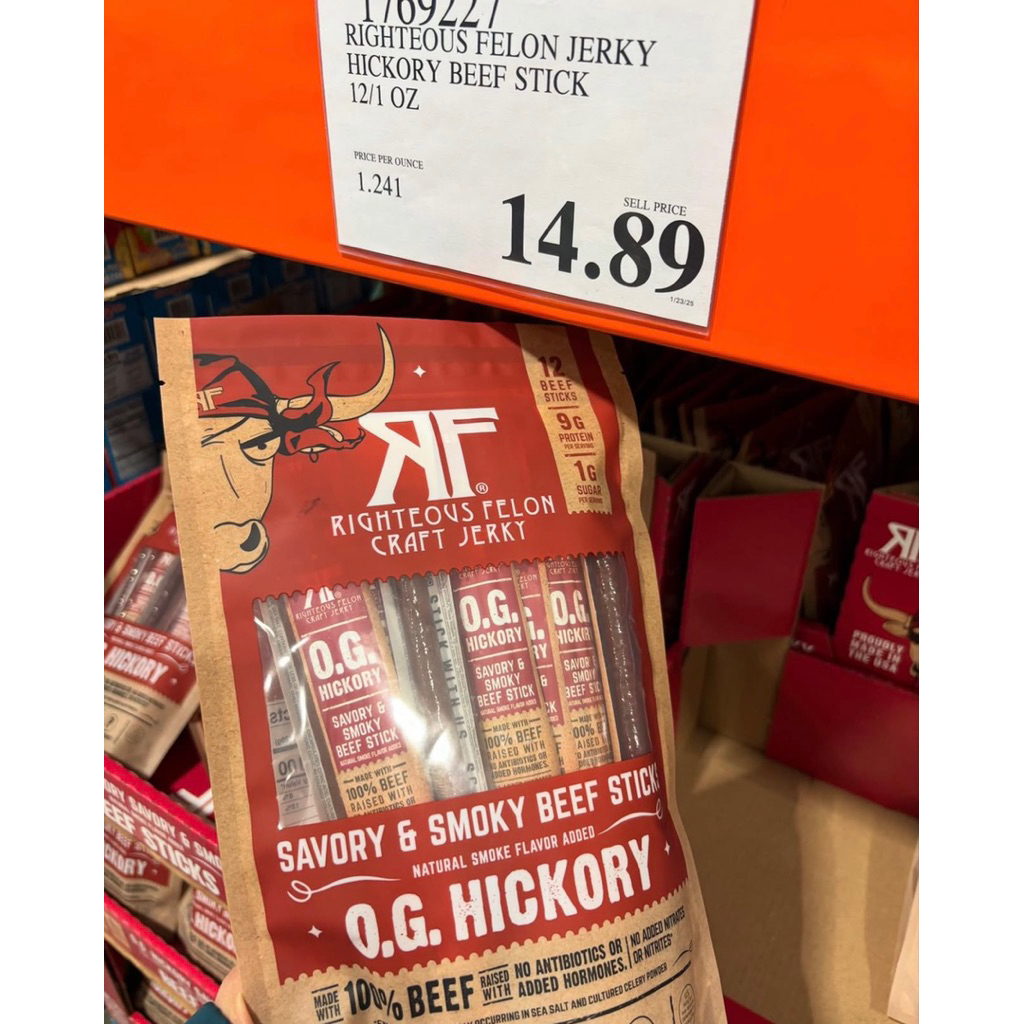 🥩 KHÔ BÒ QUE HUN KHÓI GỖ BẮC MỸ CHÂU ÂU HICKORY RF RIGHTEOUS FELON CRAFT JERKY SAVORY SMOKY BEEF STICKS OG 12 THANH 340G