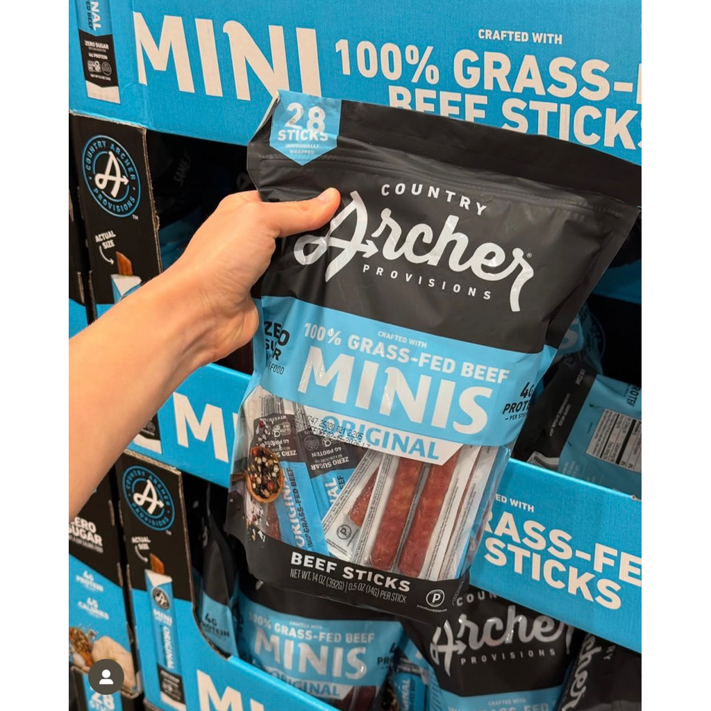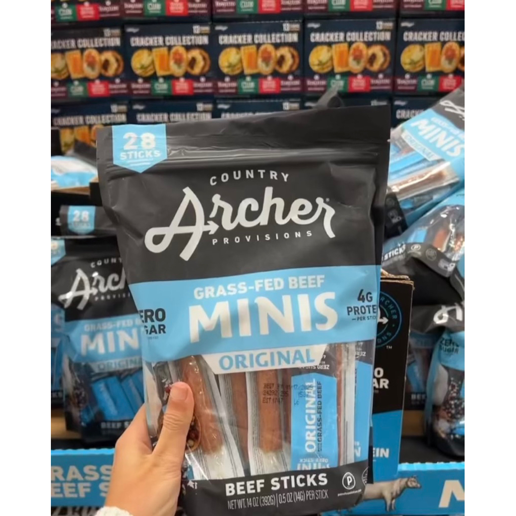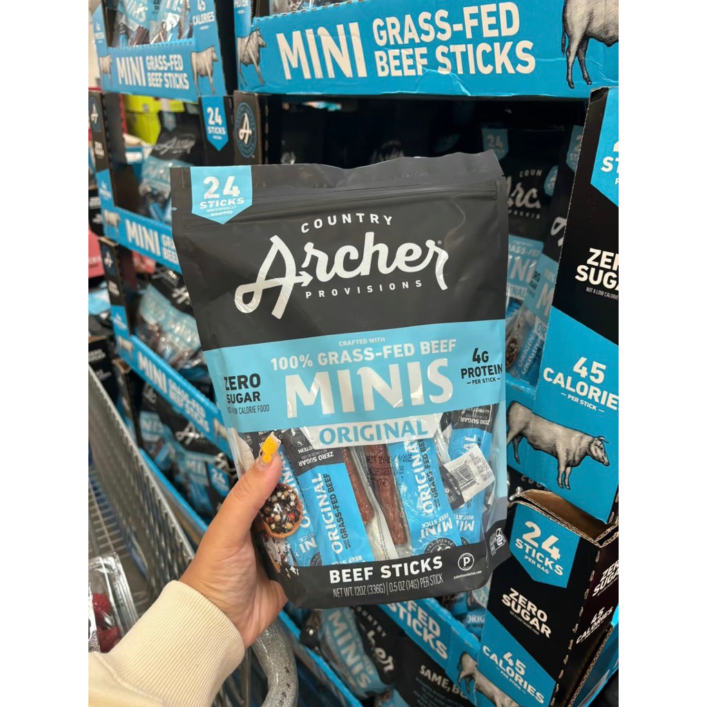 🐂XÚC XÍCH KHÔ BÒ QUE KHÔNG ĐƯỜNG ĂN LIỀN MỸ COUNTRY ARCHER MINIS ORIGINAL BEEF STICKS ZERO SUGAR TÚI 28 GÓI x 14G 336G