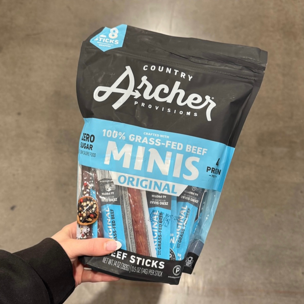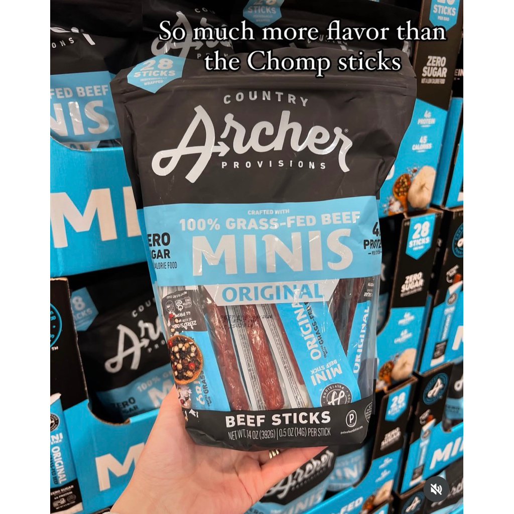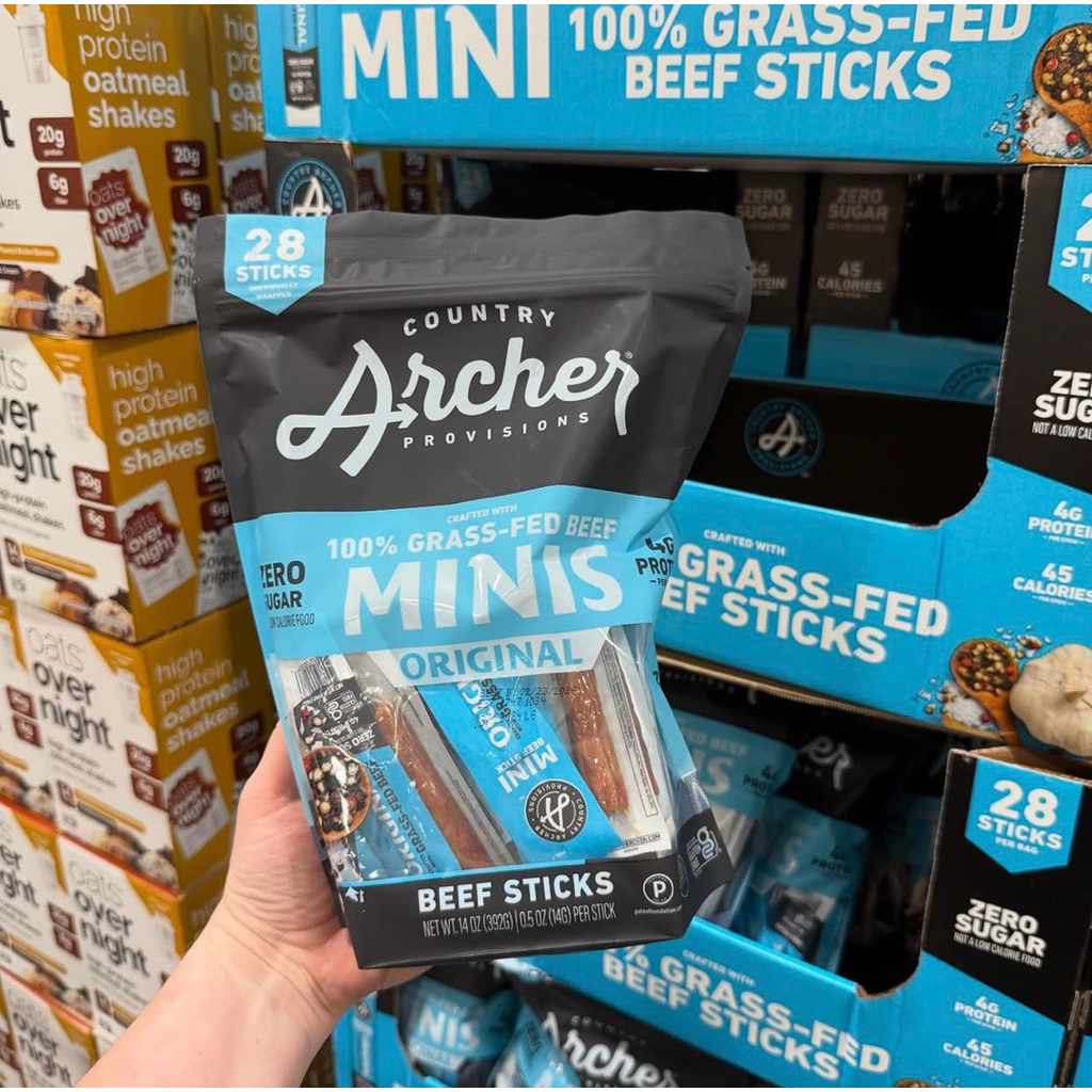 🐂XÚC XÍCH KHÔ BÒ QUE KHÔNG ĐƯỜNG ĂN LIỀN MỸ COUNTRY ARCHER MINIS ORIGINAL BEEF STICKS ZERO SUGAR TÚI 28 GÓI x 14G 336G
