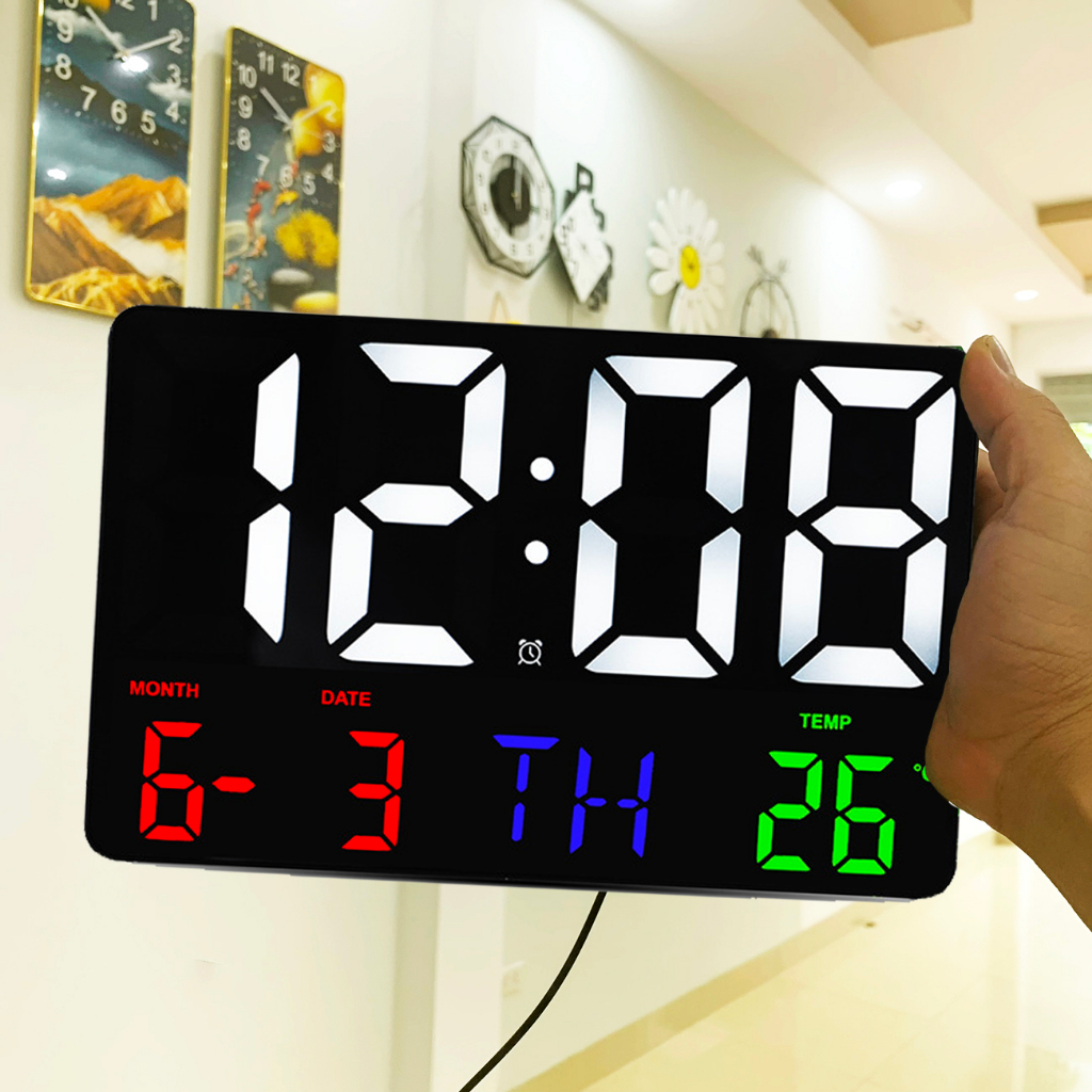 Đồng hồ led treo tường BH 12 tháng, đồng hồ led để bàn thông minh có lịch, ngày tháng, báo thức
