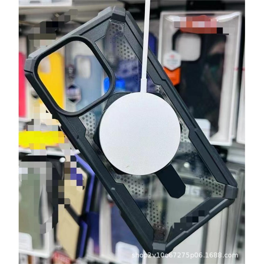 Vượt qua Hoa Kỳ iPhone từ tính chống sốc 16 15 14 13 12 Pro Max Vỏ điện thoại sạc từ tính Giá đỡ túi khí Shock @