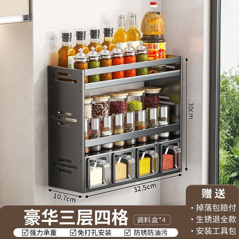 Order🥑 Giá để đồ gia vị nhà bếp treo tường gia dụng không đục lỗ bộ gia vị đa năng giá đựng đồ