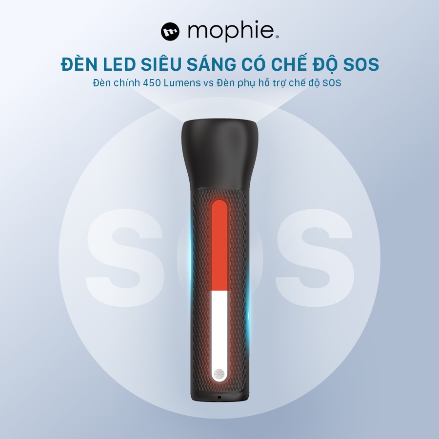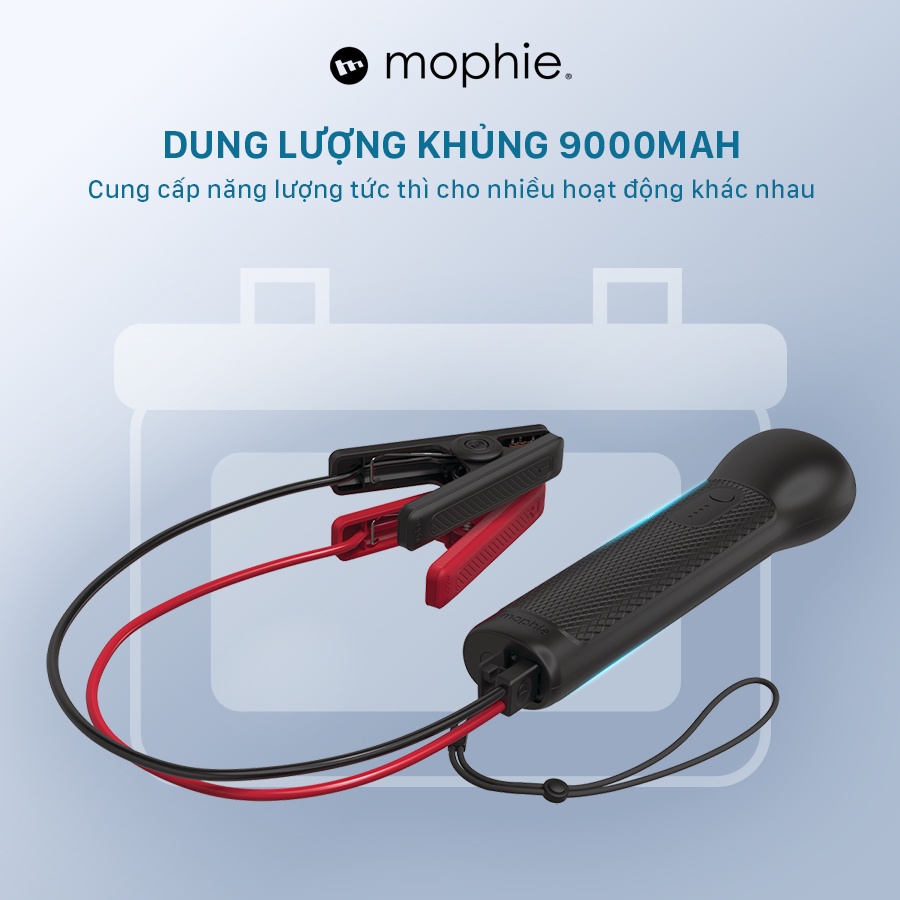 Bộ sạc kích bình mophie GO Rugged Flashlight 36.6Wh/700Amp dung lượng 9000mAh/3.7V - Tích hợp đèn pin, sạc dự phòng