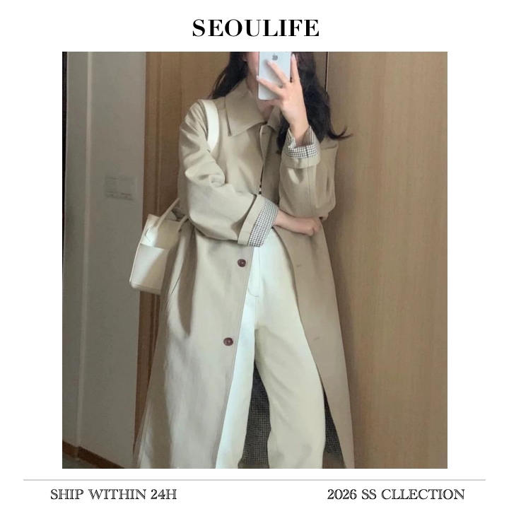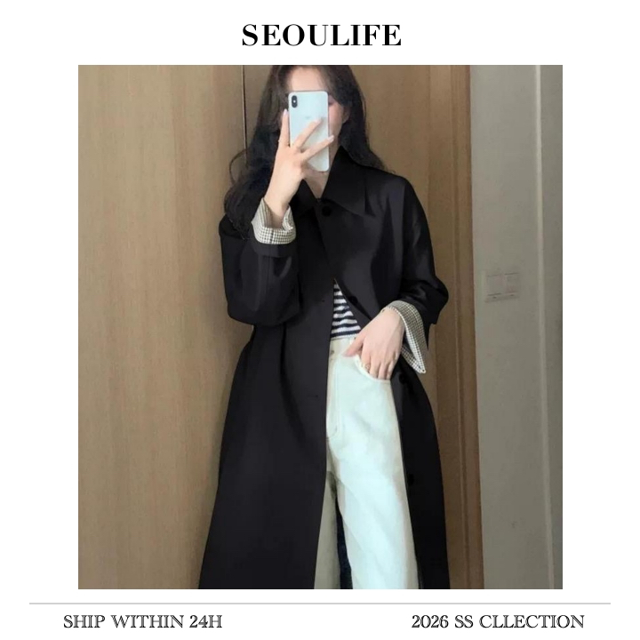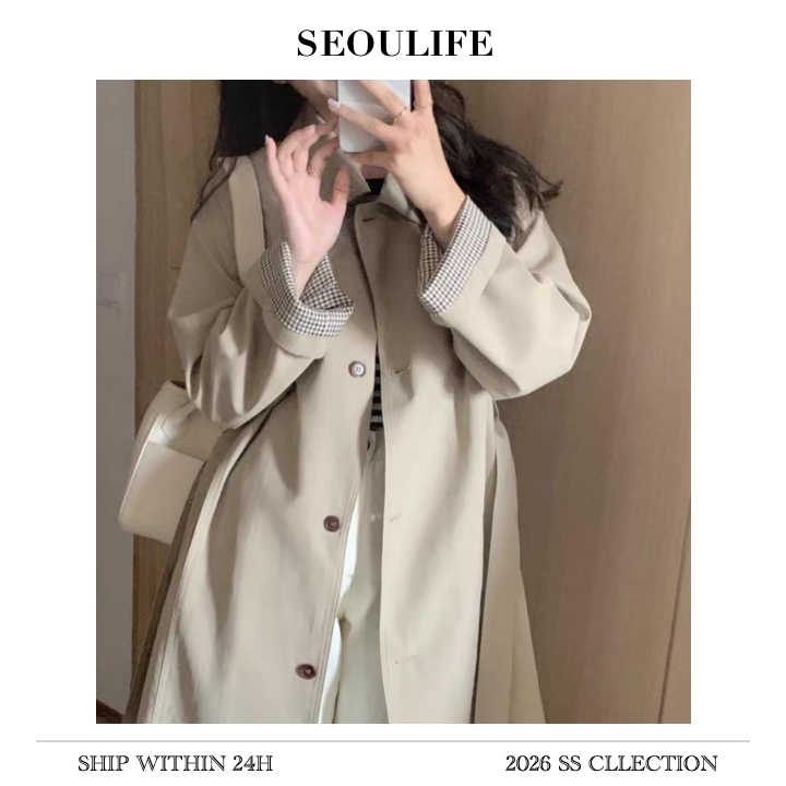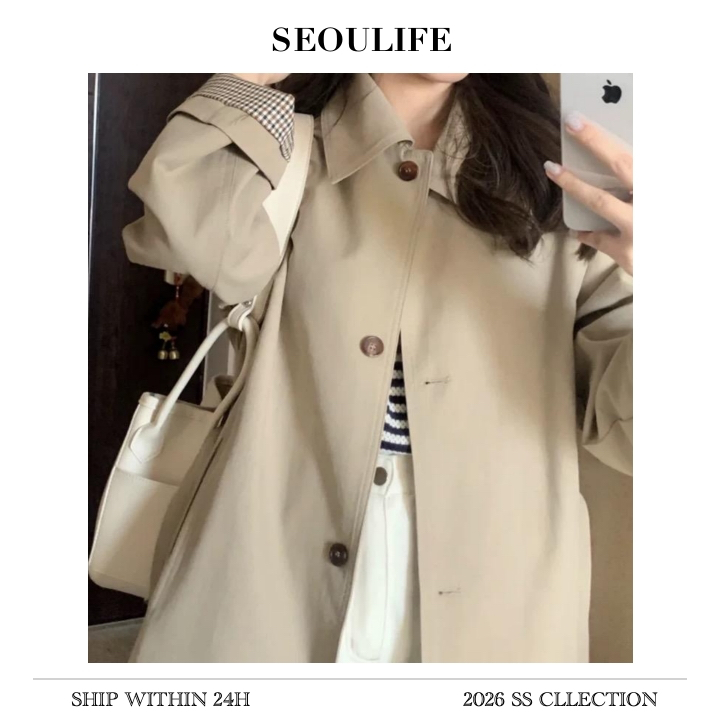 SEOULIFE| Áo khoác ngoài mùa thu đông, dành cho nữ, Kaki, Phong cách Hàn Quốc, 2026 Phiên bản mới nhất, Chất liệu chất lượng cao, Trang phục thời trang.